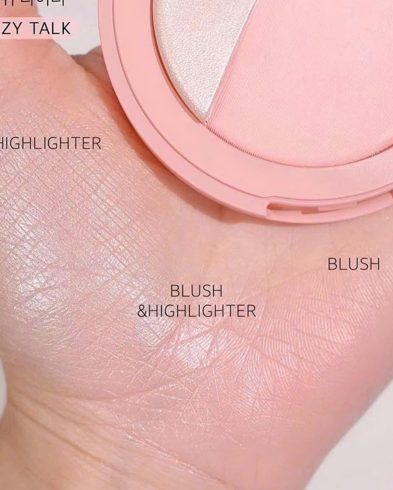 Thiết kế 2 trong 1 kết hợp má hồng và highlight trong cùng một ô, vừa tạo màu má hồng tự nhiên, vừa thêm độ sáng nhẹ, bắt sáng cho gương mặt thêm rạng rỡ, lấp lánh.