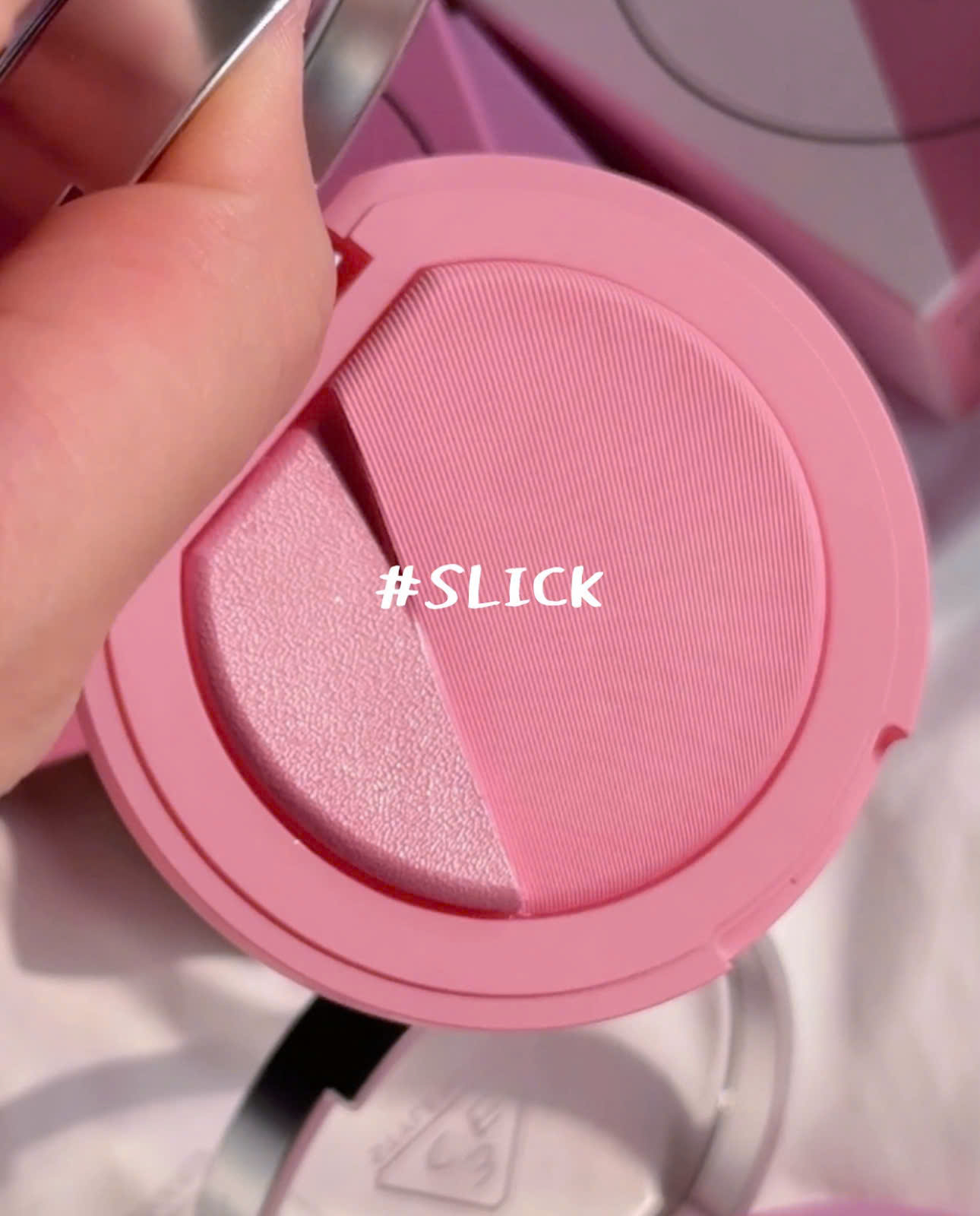 - 3CE Blushlighter với thiết kế hộp phấn tròn, nắp trong suốt giúp bạn dễ dàng nhìn thấy màu phấn bên trong. Phấn má hồng và highlighter được đặt cạnh nhau, giúp bạn dễ dàng sử dụng và kết hợp. Thiết kế nhỏ gọn này giúp bạn có thể mang 3CE Blushlighter theo bên mình và trang điểm mọi lúc mọi nơi.