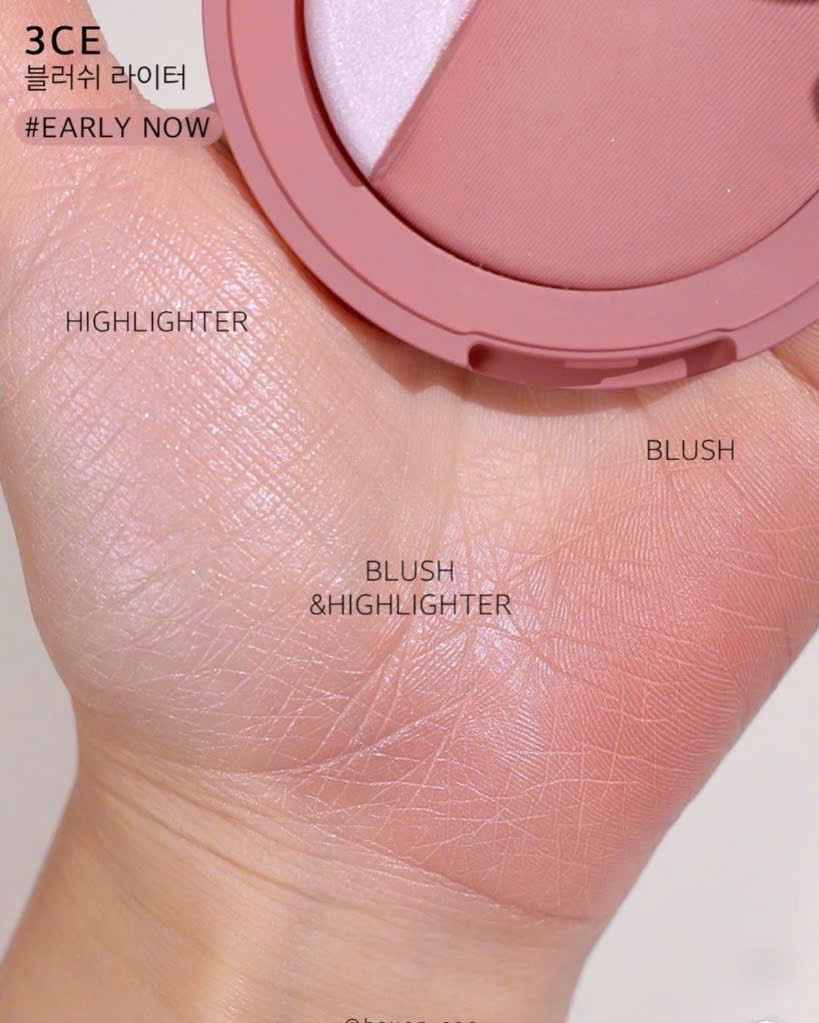 - Phấn má hồng & Highlight 3CE Blushlighter giúp tạo điểm nhấn cho gương mặt, mang đến vẻ ngoài rạng rỡ và tươi tắn.