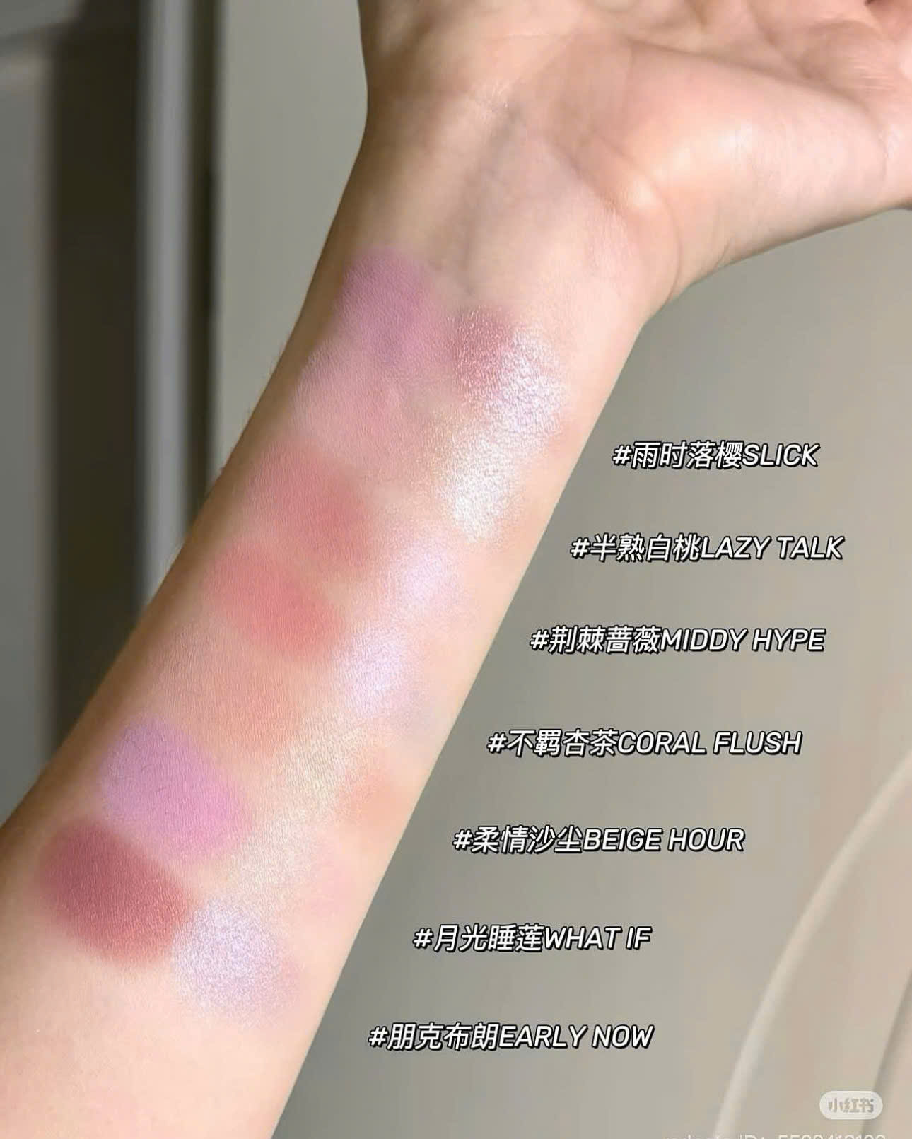 Bảng màu đa dạng, trendy: Bảng màu phấn má bao gồm những tone màu tươi sáng, trendy, phù hợp với nhiều tone da và phong cách trang điểm khác nhau.
