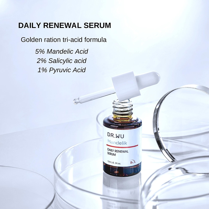 - Dr. Wu Daily renewal serum chứa Salicylic acid và Mandelic acid.