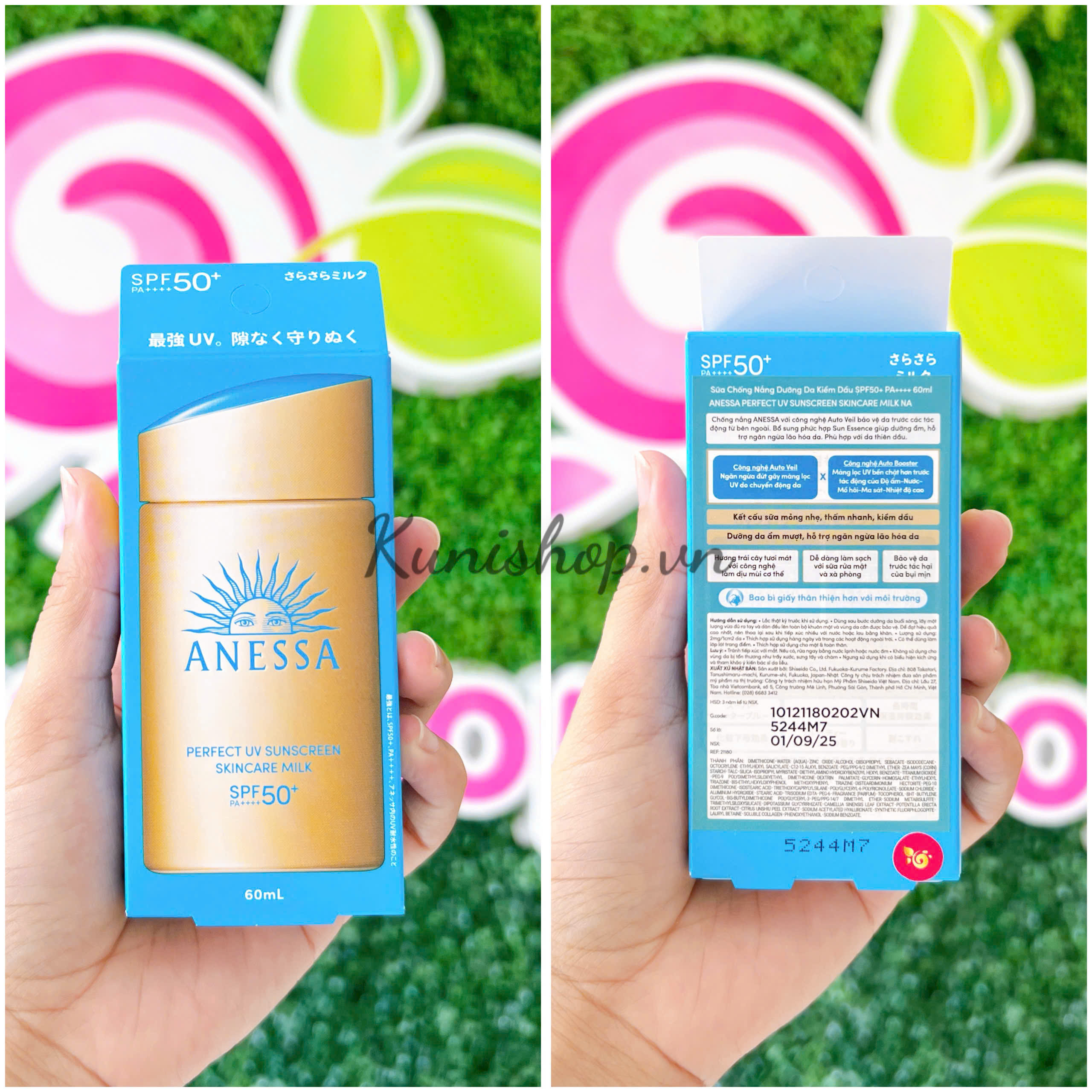Anessa Perfect UV Sunscreen Skincare Milk SPF50+ PA++++ với công nghệ mới giúp cho lớp màng chống UV trở nên bền vững hơn khi gặp nhiệt độ cao, độ ẩm và mồ hôi. Sản phẩm bảo vệ hoàn hảo giúp chống UV & bụi mịn hoàn hảo dưới mọi điều kiện sinh hoạt, kể cả thời tiết khắc nghiệt nhất (phù hợp với làn da thiên dầu).