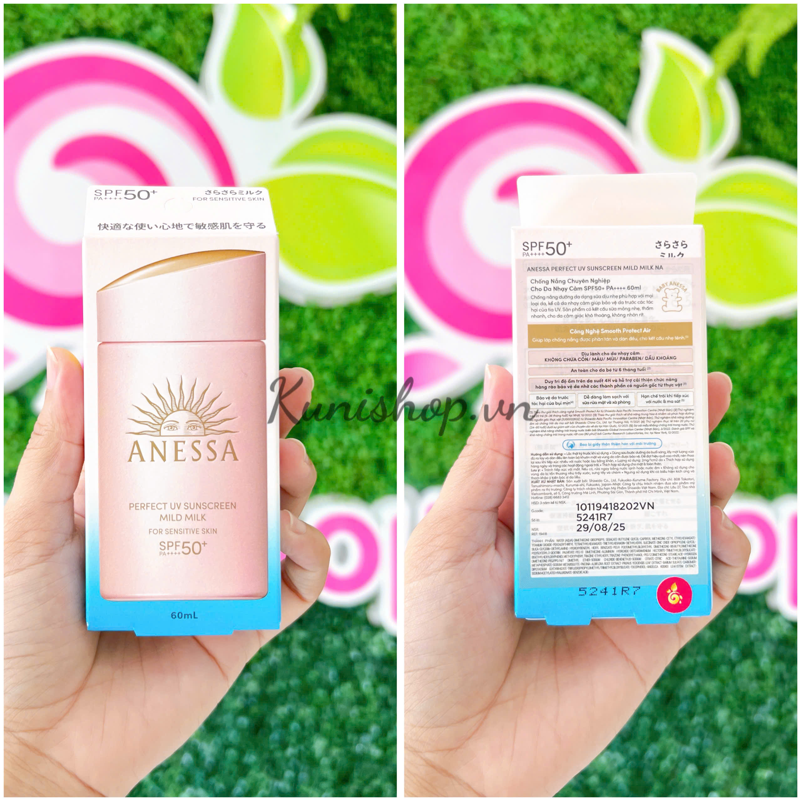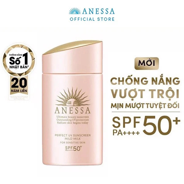Anessa Perfect UV Sunscreen Mild Milk SPF50+ PA++++ là sản phẩm kem chống nắng của Anessa (thuộc tập đoàn Shiseido). Đây là thương hiệu kem chống nắng được yêu thích trong 20 năm liên tiếp tại Nhật Bản. Kết cấu mỏng nhẹ và thành phần 5 không (không màu, không hương liệu, không cồn, không dầu khoáng và không paraben) góp phần bảo vệ da tối ưu và phù hợp những làn da siêu nhạy cảm, kể cả làn da em bé