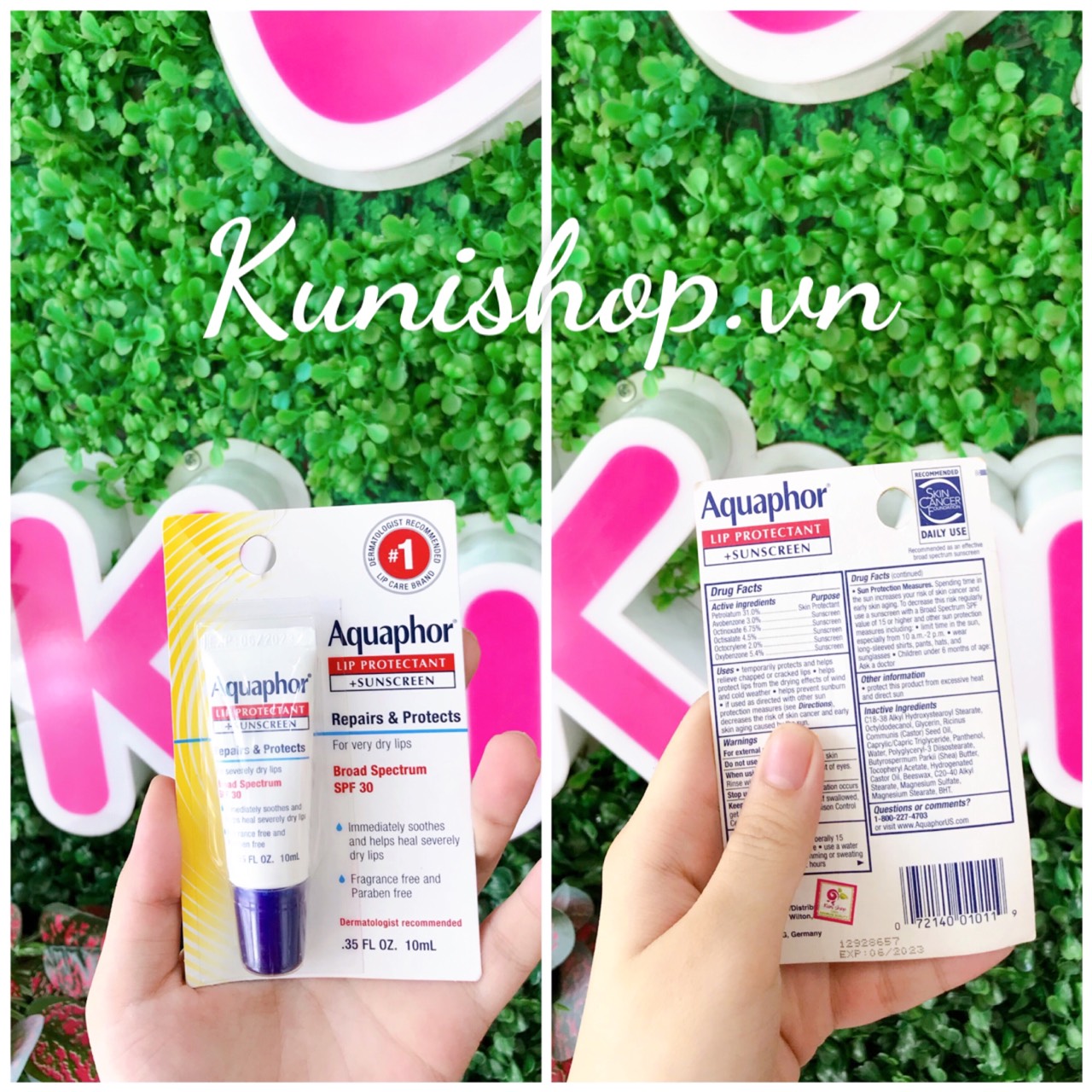 Dưỡng Môi Aquaphor Lip Protectant and Sunscreen Ointment với các loại vitamins C, E và các chiết xuất thực vật như bơ hạt mỡ, hoa cúc giúp làm mềm và dưỡng ẩm môi, ngăn ngừa tình trạng khô, nứt môi cùng chỉ số chống nắng an toàn SPF30 giúp bảo vệ môi toàn diện dưới tác hại của tia UVA và UVB.