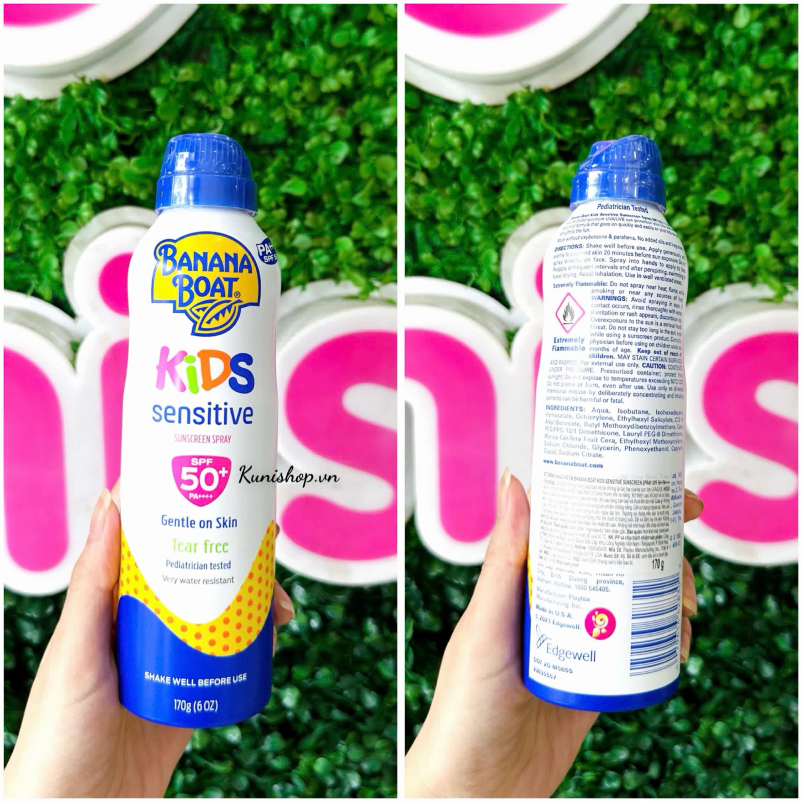 Kem chống nắng cho em bé Banana Boat Kids Sensitive Sunscreen Spray SPF50+ PA++++