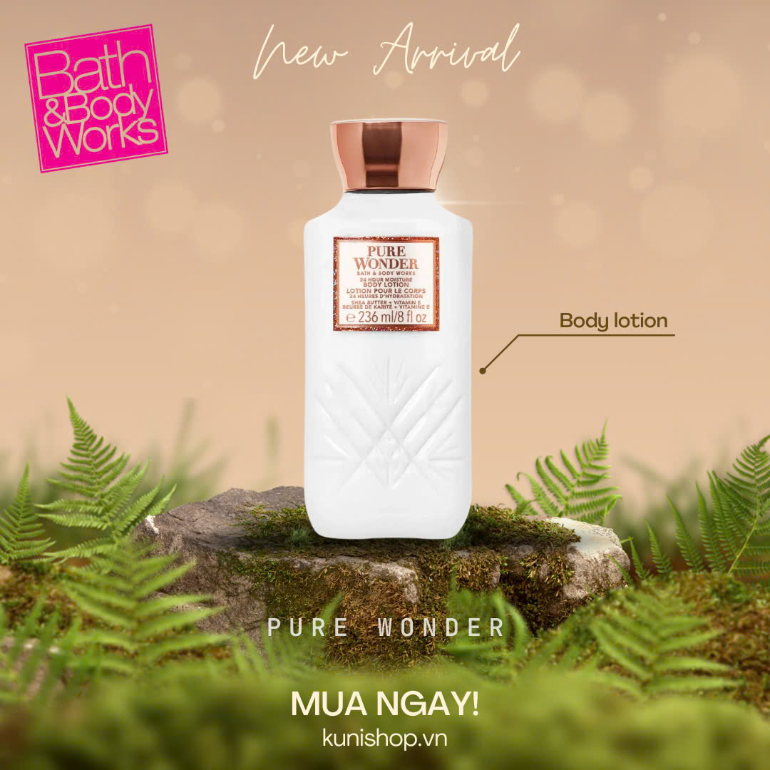 Sữa dưỡng thể Pure Wonder – Bath and Body Works với công thức dưỡng ẩm đặc biệt và không gây nhờn, sữa dưỡng thể giúp cho da cực mềm mại và mịn màng hơn chỉ sau một lần sử dụng.Cùng với các thành phần thiên nhiên giúp nuôi dưỡng làn da từ sâu bên trong, giảm tình trạng da thô ráp và sần sùi, ngăn chặn sự lão hóa và hình thành các sắc tố, cải thiện tình trạng da tối màu, giúp nâng tone sáng da.