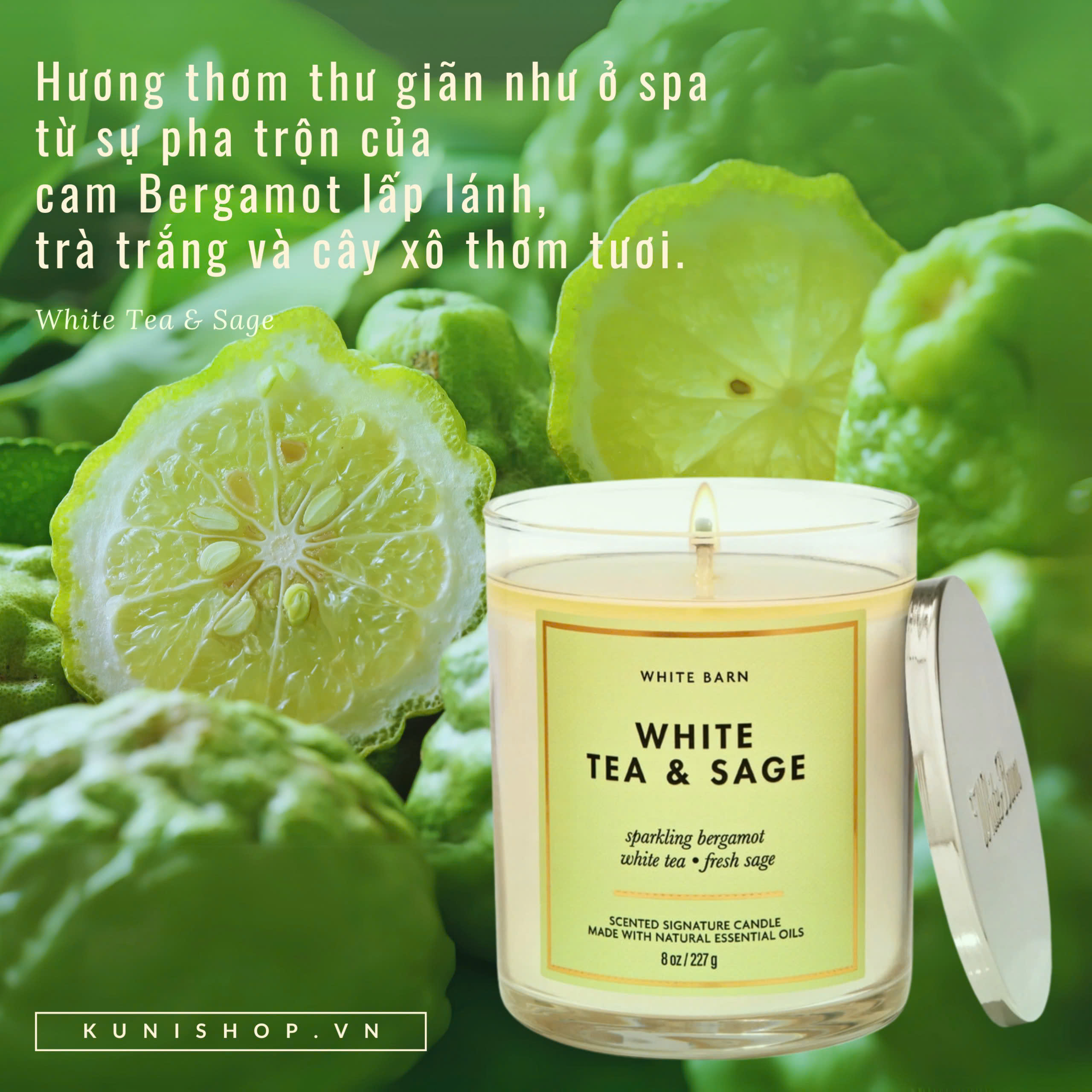 Hương thơm thư giãn như ở spa từ sự pha trộn của cam Bergamot lấp lánh, trà trắng và cây xô thơm tươi. Giúp xua tan lo âu, xoa dịu mệt mỏi.