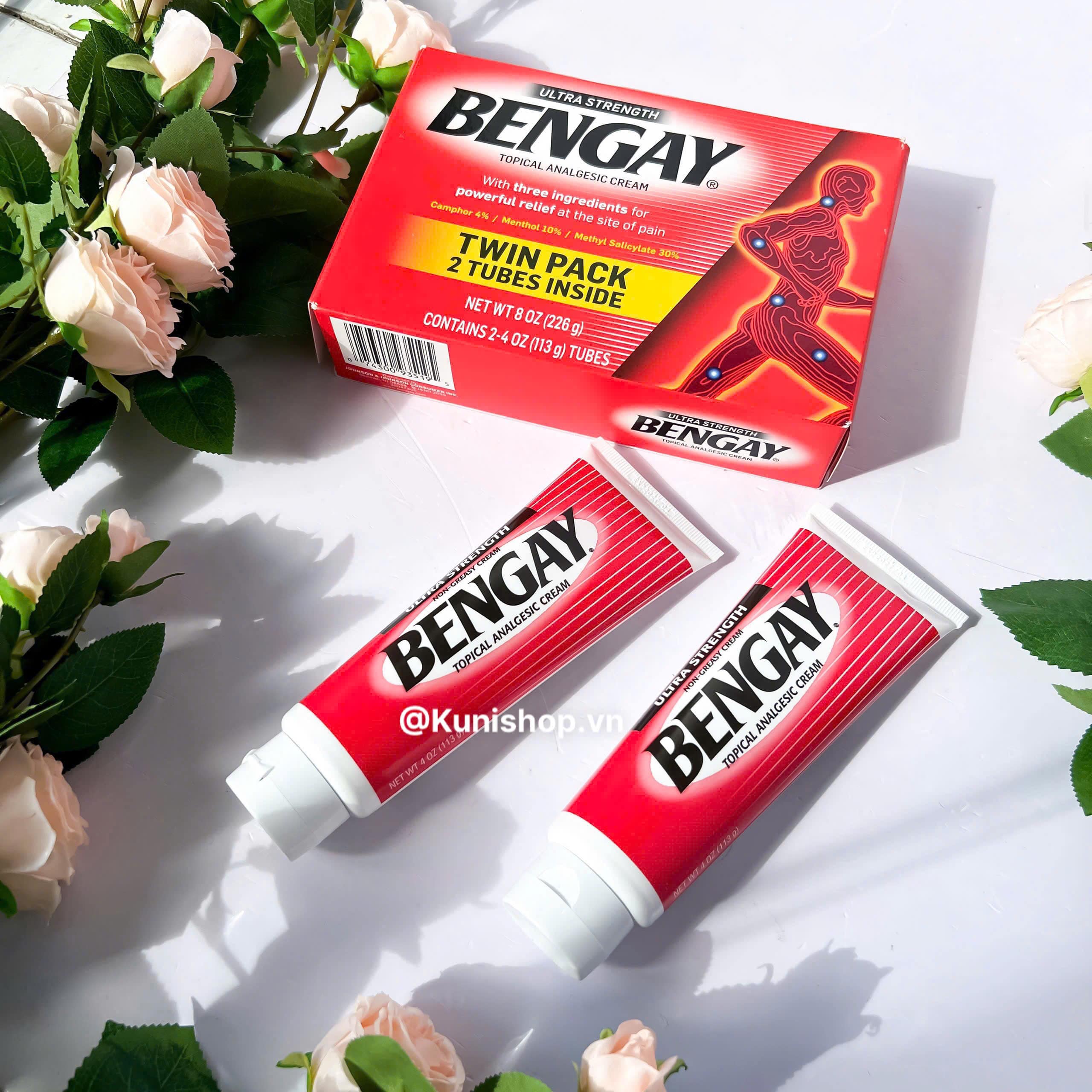 Bengay Ultra Strength là loại kem thoa được sử dụng để làm giảm đau cơ và khớp là thương hiệu nổi tiếng của Mỹ trong nhiều thập kỷ qua về tác dụng giảm đau các phần cơ, xương, khớp. Bengay Ultra Strength có tác dụng giảm đau nhanh do đau cơ, đau lưng, bong gân, đau do viêm cơ-khớp, đau dây thần kinh và cả các trường hợp viêm cơ, nhức mỏi cơ, các vết bầm tím.