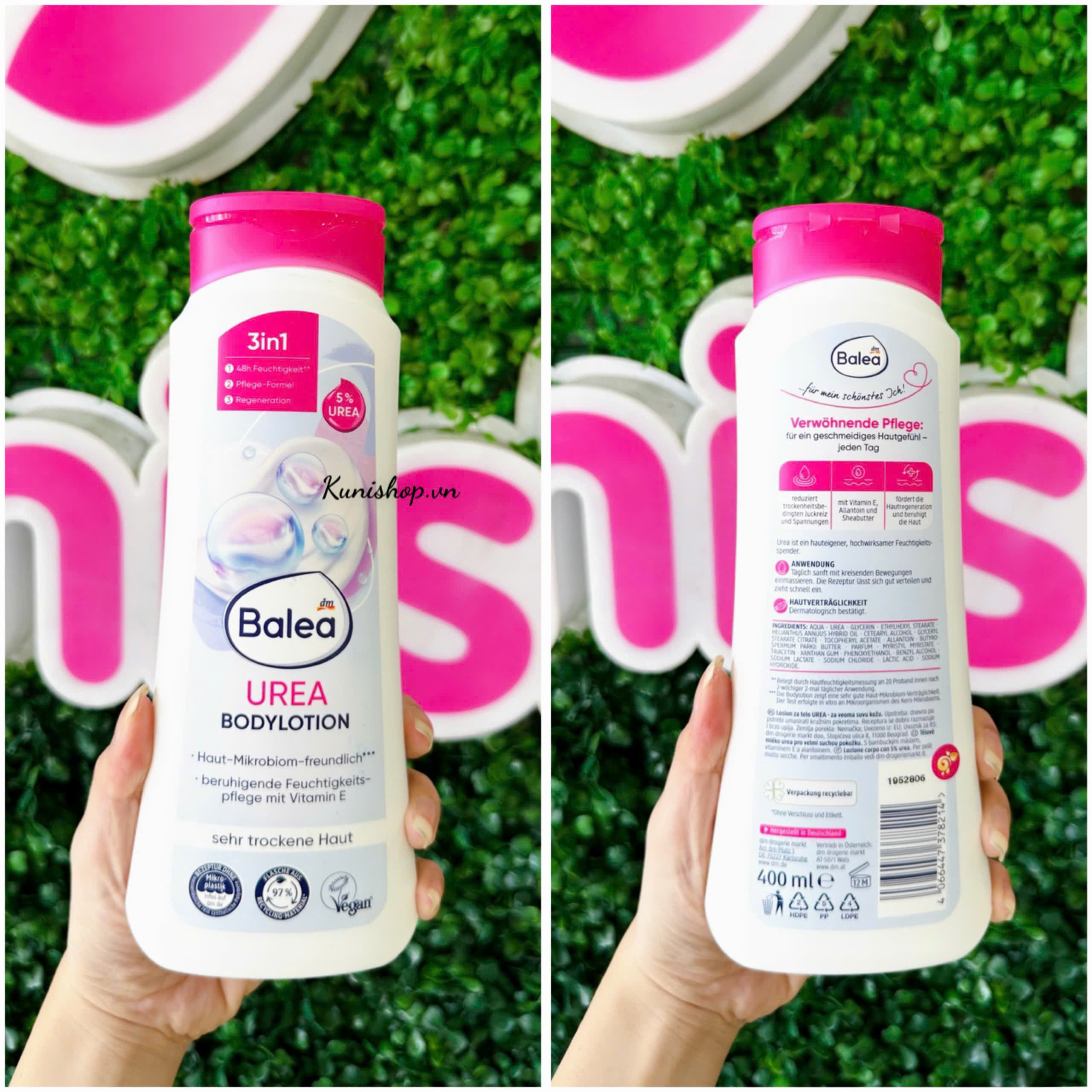 Đặc tính sản phẩm Sữa dưỡng thể Balea Urea dưỡng ẩm chuyên sâu cho da rất khô: - 3in1 - Dưỡng ẩm da 48h, cân bằng, tái tạo da