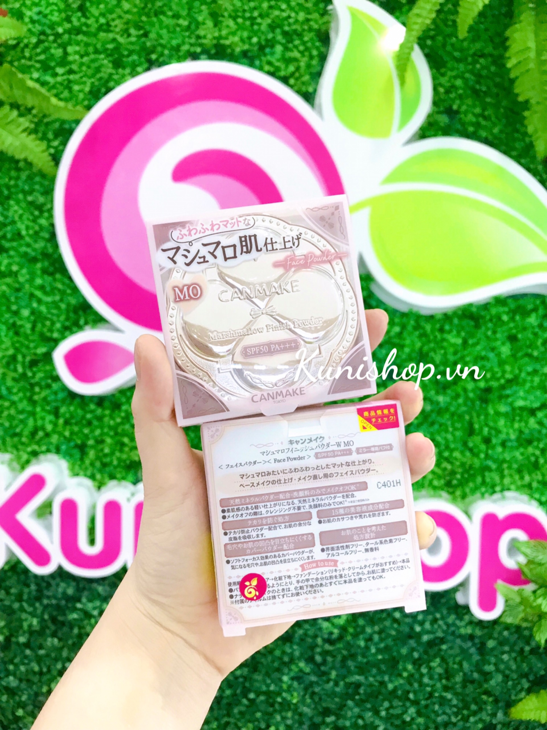 Chăm sóc da → Đánh phấn lót → Đánh phấn nền (nên dùng phấn dạng nước hay kem) → Đánh phấn phủ Marshmallow.