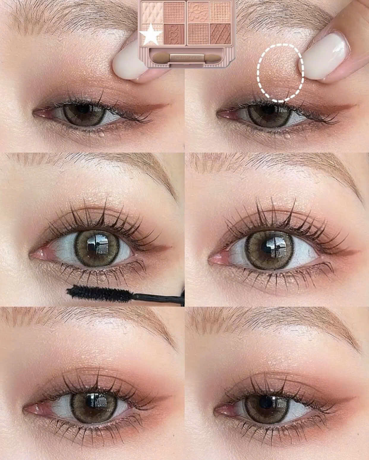 Dùng các màu lì để làm base, sau đó nhấn nhũ vào giữa bầu mắt hoặc khóe mắt để tạo điểm sáng.