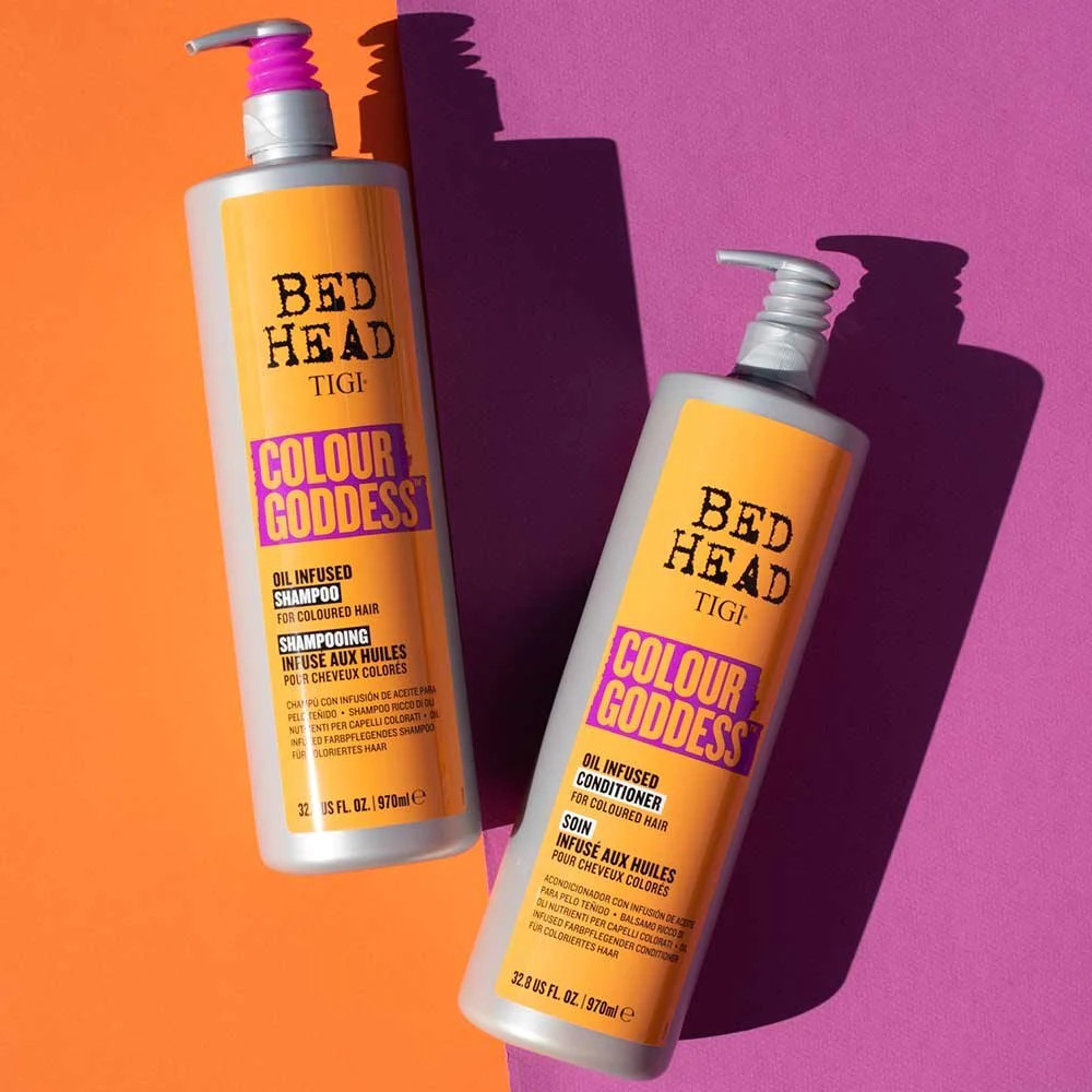 Bộ dầu gội xả tóc nhuộm Tigi Bed Head Colour Goddess: Công thức tăng cường màu sắc, không chỉ được thiết kế riêng mà còn được sử dụng bởi các người thợ làm tóc chuyên nghiệp. Mang lại kết quả và trải nghiệm như salon ngay tại nhà.