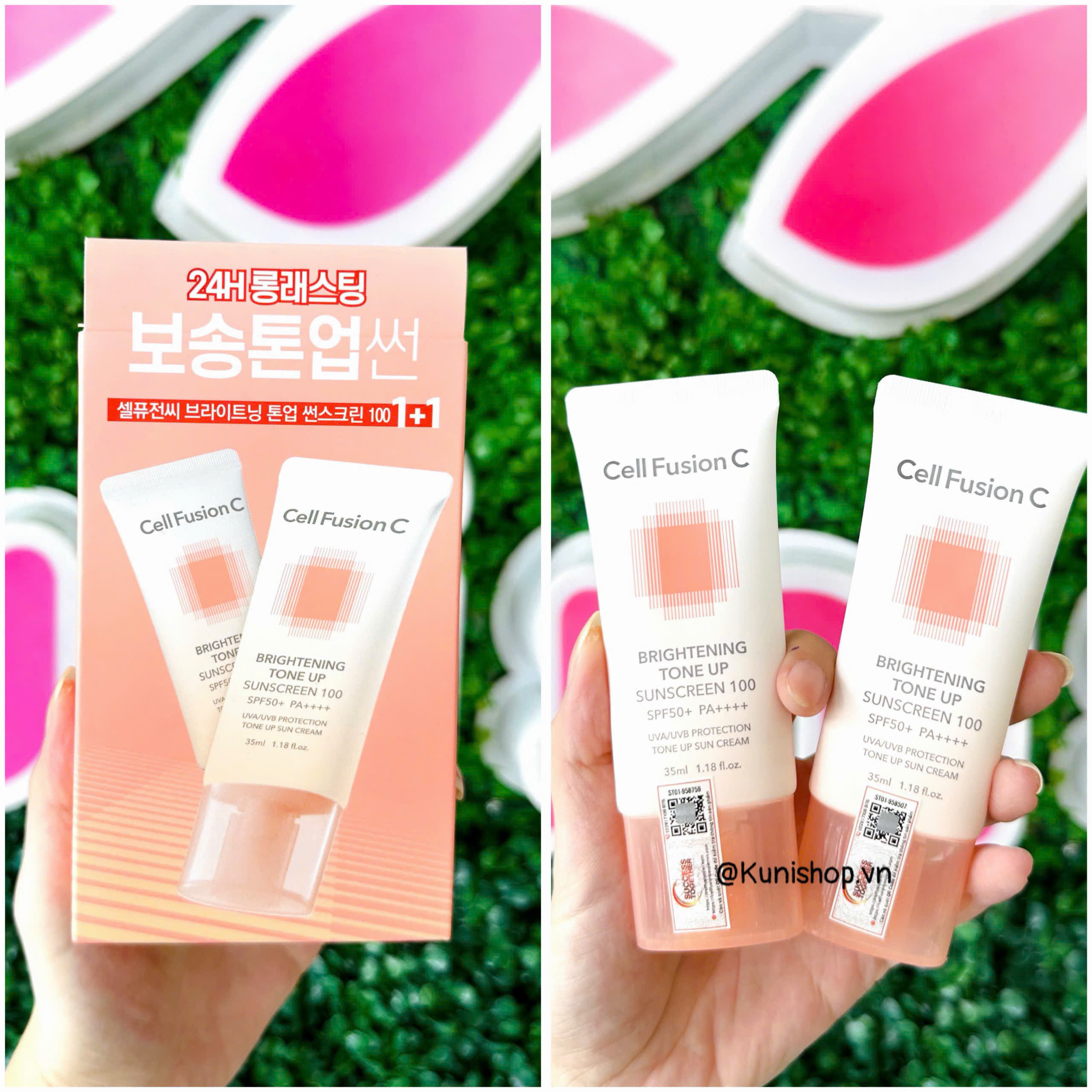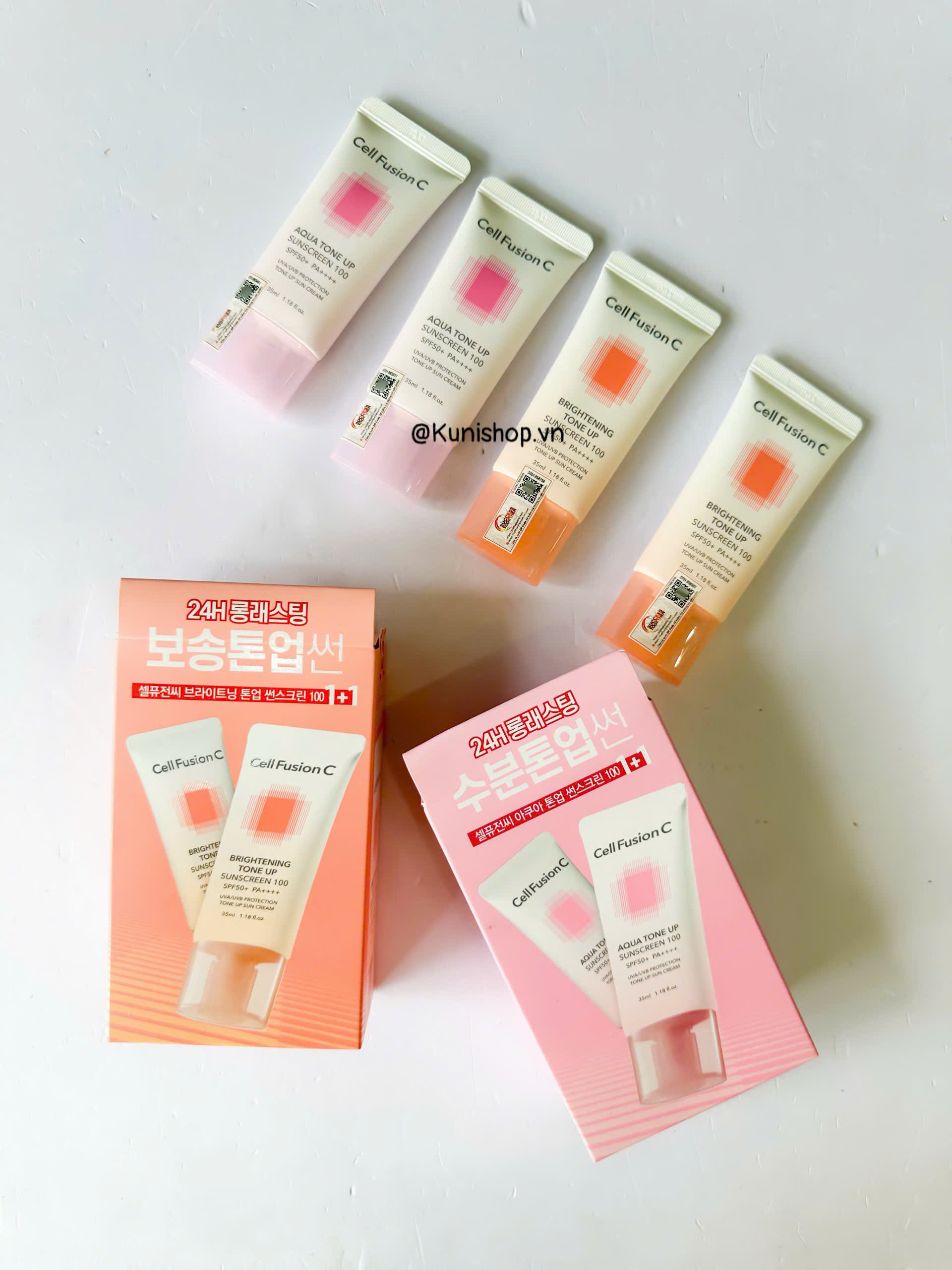 - Kem Chống Nắng Cell Fusion C Bật Tone Da Brightening Tone Up Suncreen 100 SPF50+/PA++++ 50ml giúp dưỡng trắng da từ sâu bên trong, làm mịn và đều màu da, làm mờ vết thâm, nâng tông da.