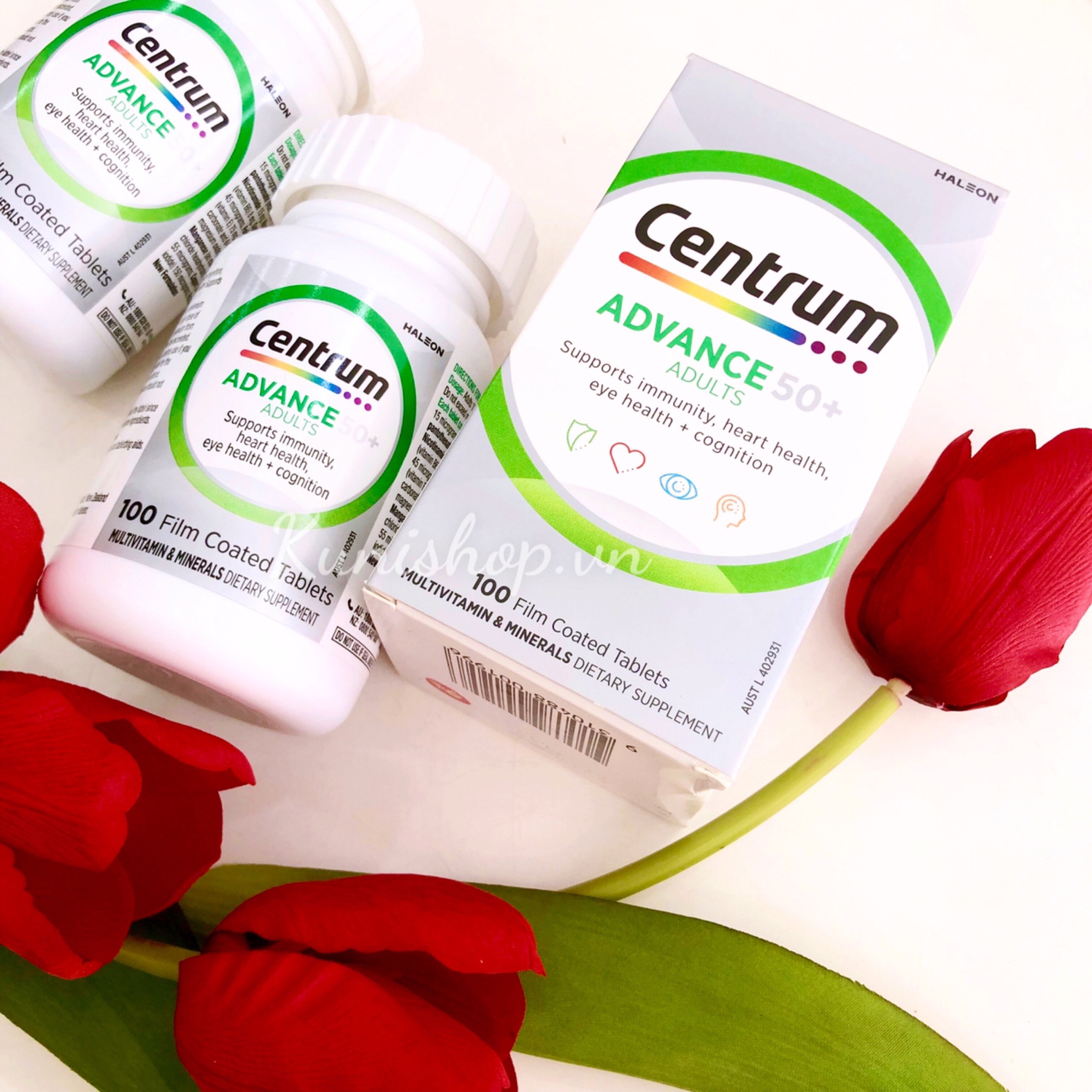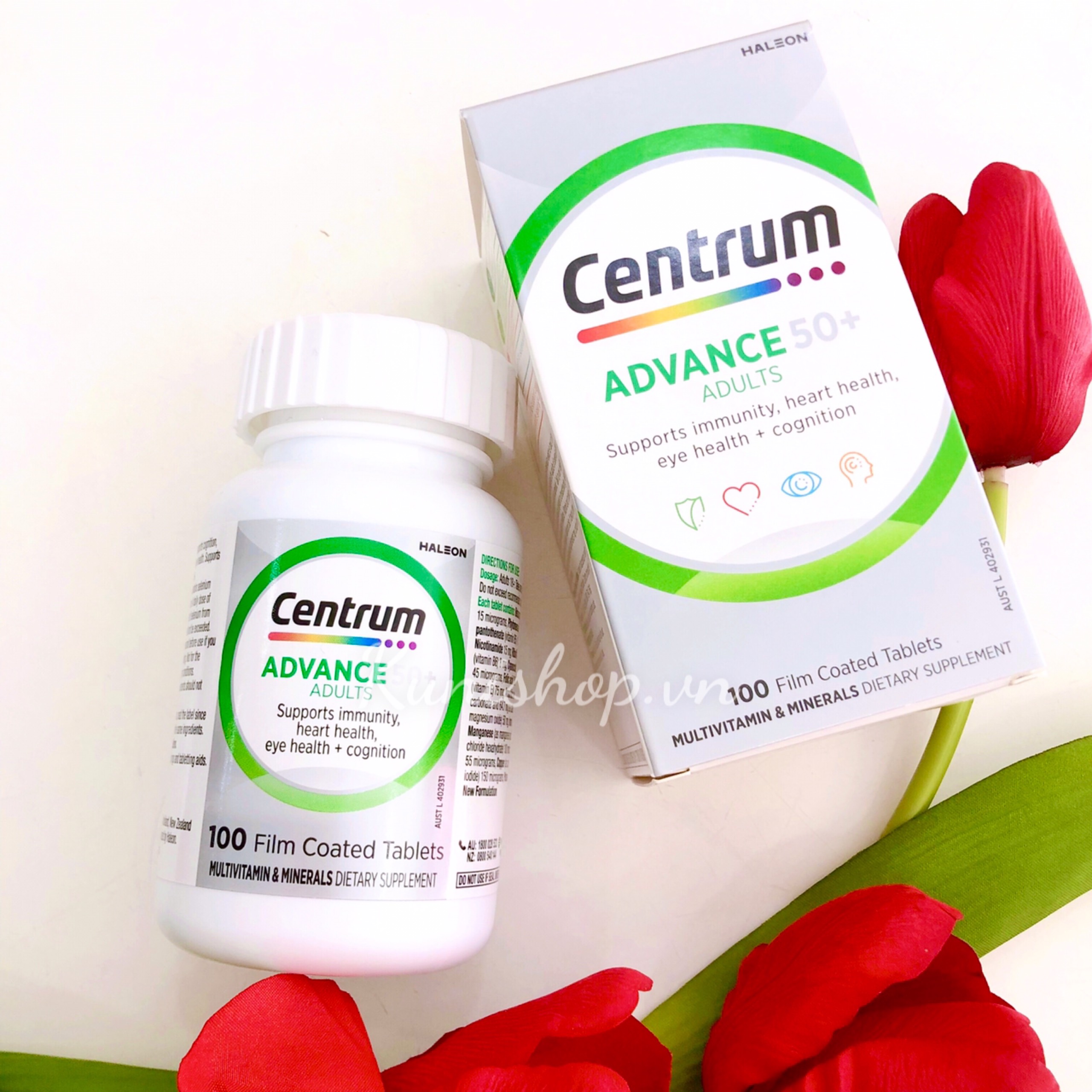 Centrum là thương hiệu Multivitamin nổi tiếng nhất thế giới đã được sự tín nhiệm của người tiêu dùng và các chuyên gia y tế thế giới hơn 30 năm qua. Các sản phẩm Centrum được sản xuất sau khi nghiên cứu kỹ lưỡng và nghiên cứu lâm sàng trong khoa học dinh dưỡng. Sản phẩm Vitamin tổng hợp cho người cao tuổi CENTRUM ADVANCE 50+ có chứa hàm lượng vitamin của một số nhóm tăng có chọn lọc như một số vitamin nhóm B để sản sinh năng lượng, và chất chống oxy hóa như vitamin E để giúp hỗ trợ khả năng miễn dịch. Sản phẩm cũng là một nguồn cung cấp canxi. Chế độ ăn uống đầy đủ canxi giúp duy trì sức khỏe của xương rất quan trọng đối với người cao tuổi.