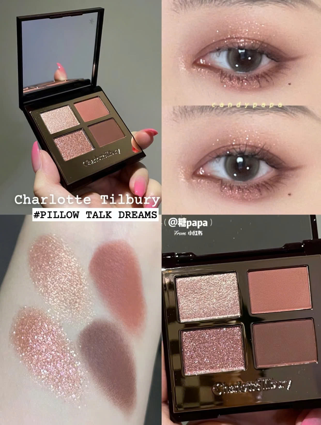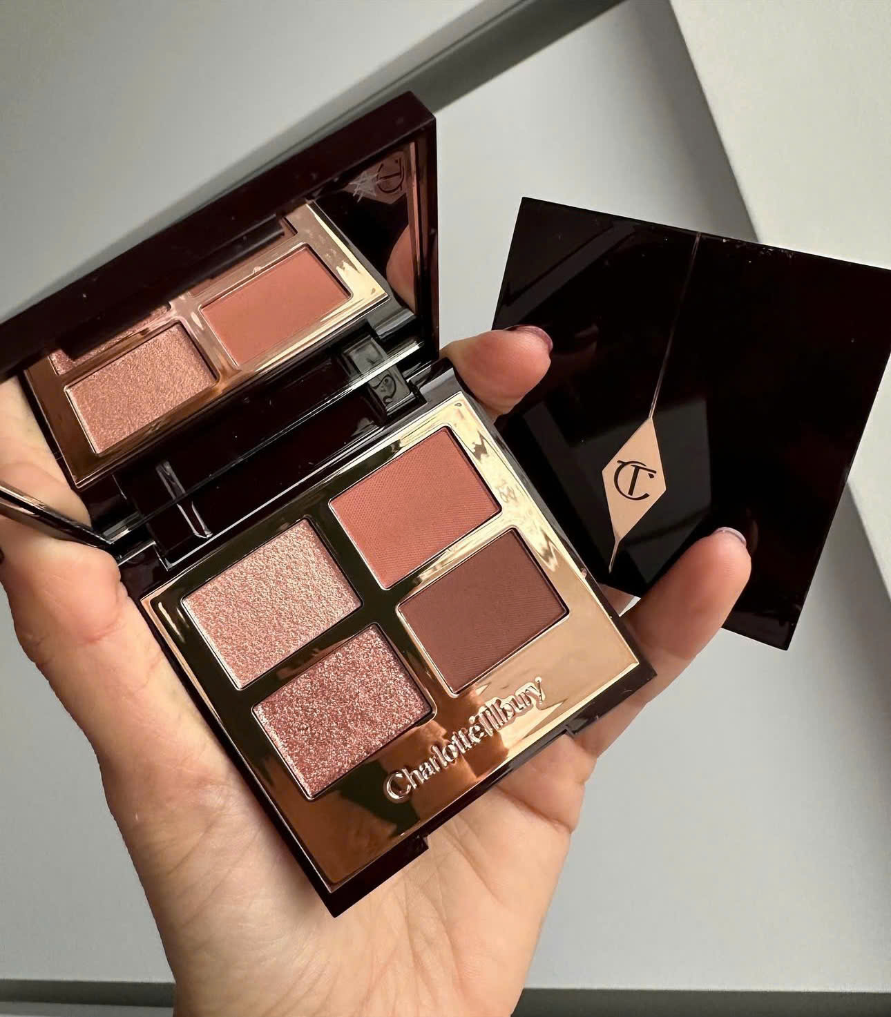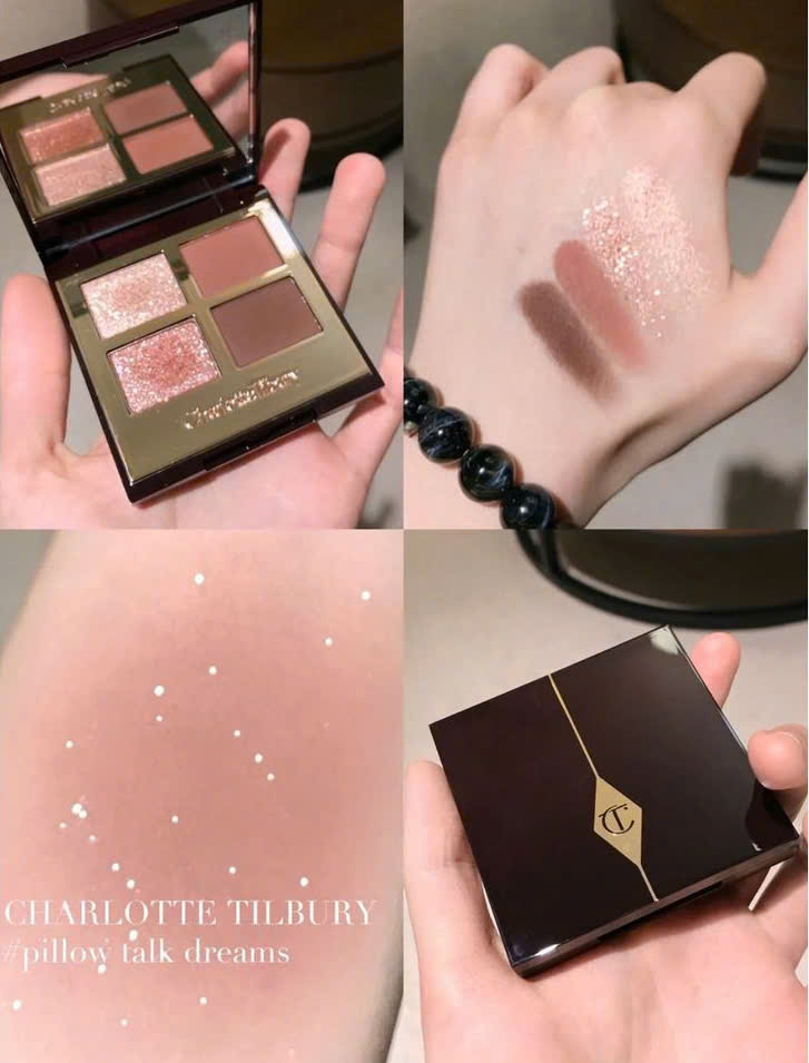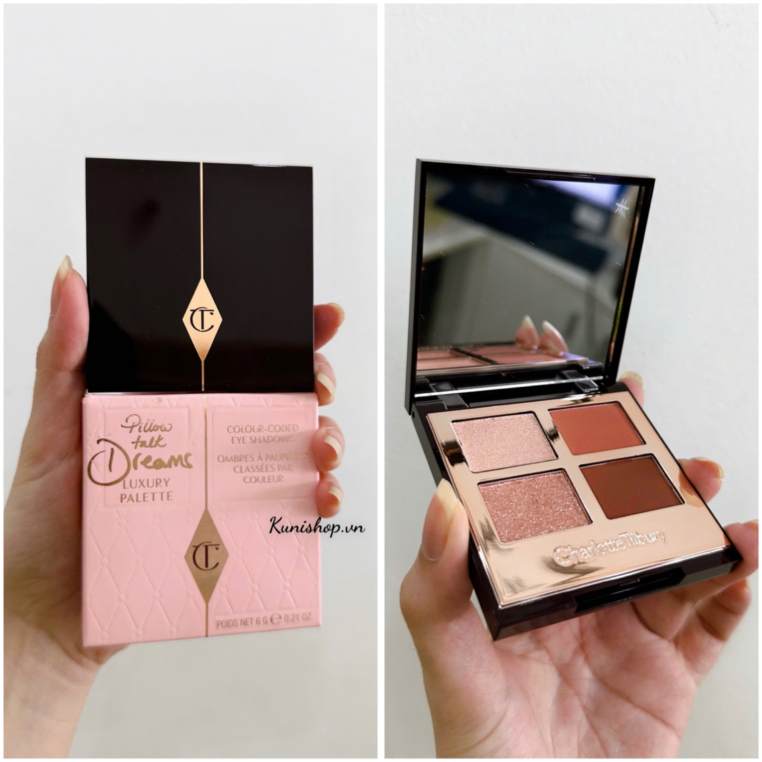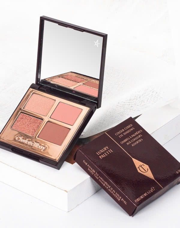 Charlotte Tilbury Luxury Eyeshadow Palette với 4 tông màu hoa hồng lê, hoa hồng bụi mờ, nâu mọng mờ, hoa hồng lung linh. Với những màu sắc đa dạng bạn có thể sử dụng riêng từng màu hoặc mix chúng lại với nhau để tạo điểm nhấn cho bầu mắt quyến rũ. Phấn mắt trong bảng siêu mịn, không bột, không bết rít vào mắt đảm bảo cho bạn thỏa thích hoạt động ngày dài.