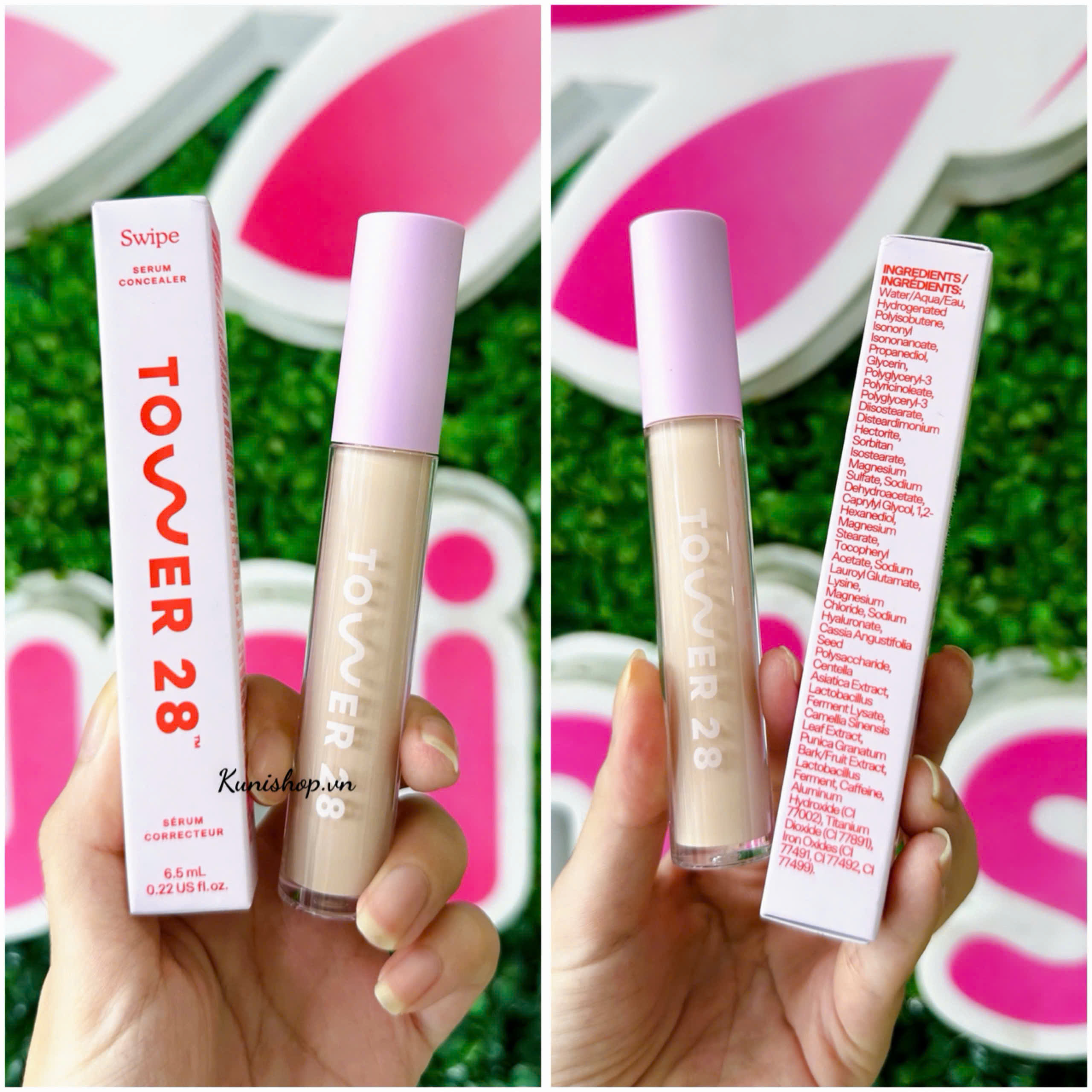 Che khuyết điểm Tower 28 Swipe All-Over Hydrating Serum Concealer là kem che khuyết điểm dễ tán lên da đẹp như serum. Kem có độ che phủ vừa, dễ dàng che phủ quầng thâm, đỏ mụn và vết thâm với finish tự nhiên.