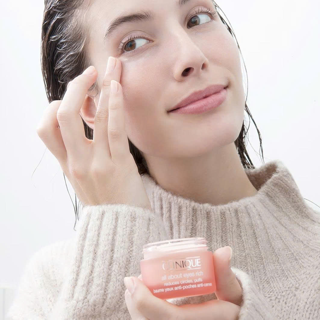 Kem dưỡng hỗ trợ giảm thâm và hỗ trợ giảm bọng mắt Clinique All About Eyes là dòng kem dưỡng mắt lành tính với các thành phần có khả năng hỗ trợ làm giảm những tác nhân gây thâm quầng mắt và hỗ trợ bổ sung độ ẩm cho vùng da dưới mắt mềm mịn, căng đầy và tràn đầy sức sống.