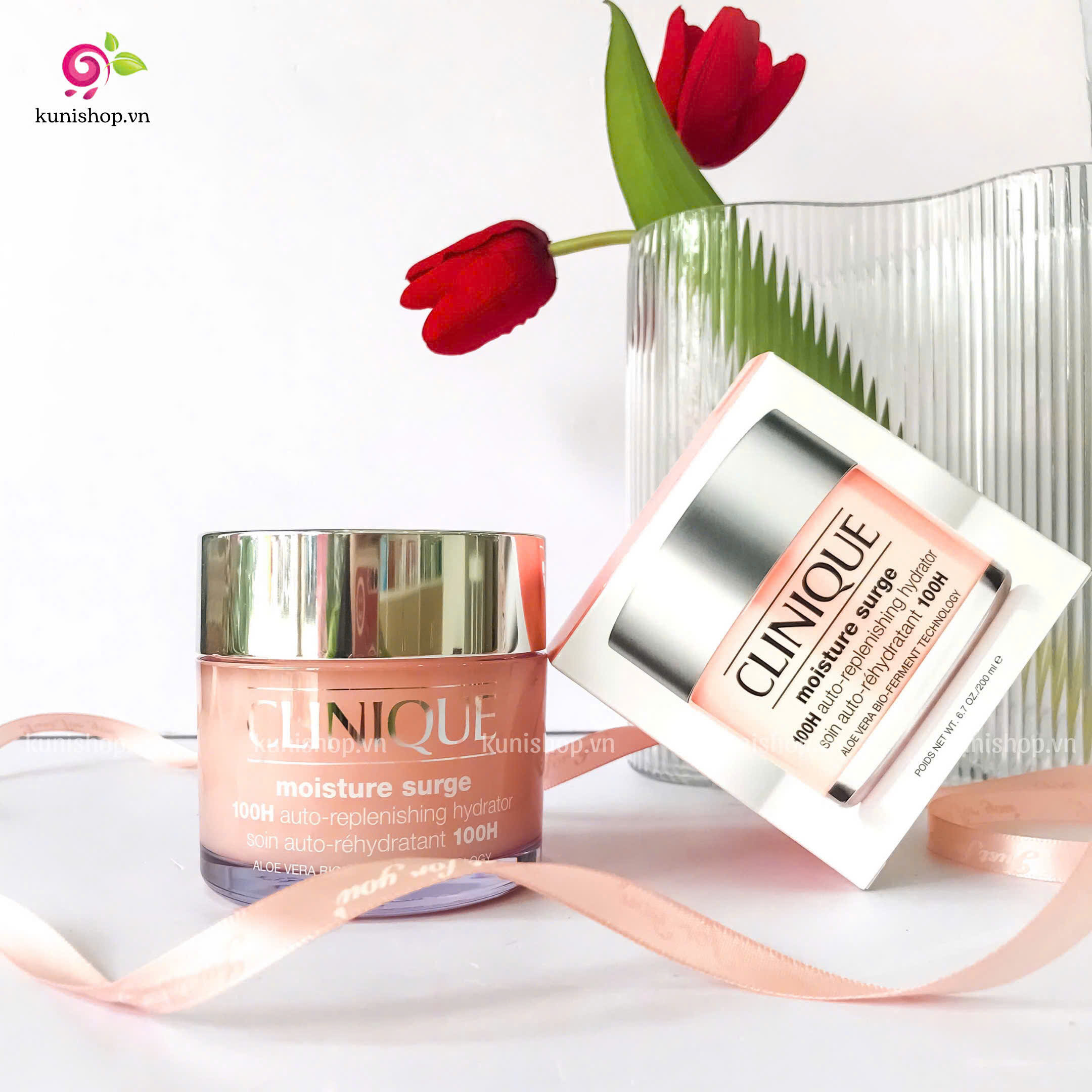 Kem dưỡng ẩm Clinique Moisture Surge ™ 100H Auto-Replenishing Hydrator là một bản nâng cấp của hãng này với khả năng dưỡng ẩm sâu 10 lớp, kéo dài trong vòng 100h, ngay cả khi bạn rửa mặt hay trang điểm. Công thức không chứa dầu nhẹ cung cấp khả năng hydrat hóa sâu hơn vào từng tầng của da. Tăng cường độ ẩm tức thì 174% và giữ cho da ngậm nước trong 100 giờ. Loại dưỡng ẩm tác động kép tiên tiến này với Công nghệ Tự động bổ sung giúp da tự tạo ra nguồn nước bên trong để tự bù nước liên tục, sau đó khóa ẩm cho làn da luôn căng mọng, sáng khỏe.