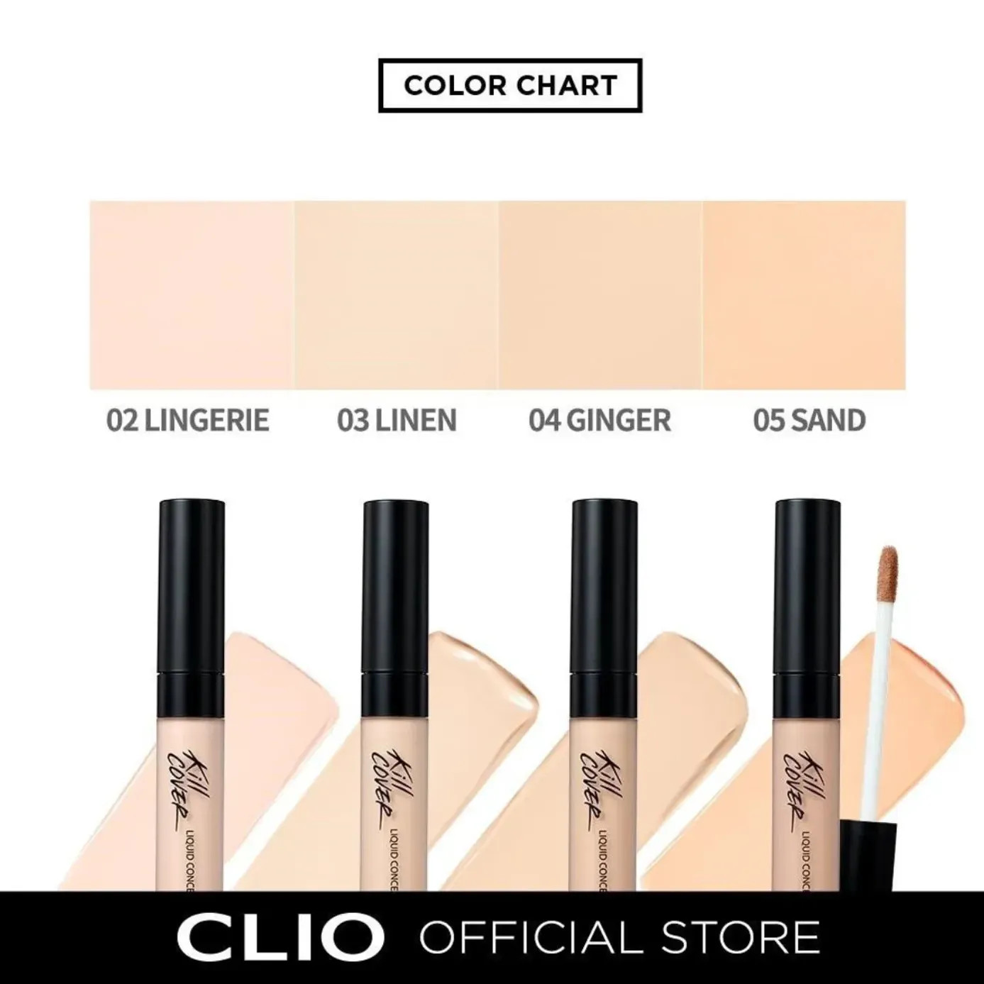 Che Khuyết Điểm Clio Kill Cover Liquid Concealer CHE PHỦ siêu tốt, đánh bay mọi khuyết điểm từ thâm mụn, mụn đỏ, lỗ chân lông to, quầng thâm, vùng da tối màu. Chất kem mỏng, có độ sệt và bám trên da để tán ra dễ dàng hơn. Phù hợp với da thường, da hỗn hợp, da có dầu. Bám trên da và giữ màu rất lâu, không thấm nước, không trôi.