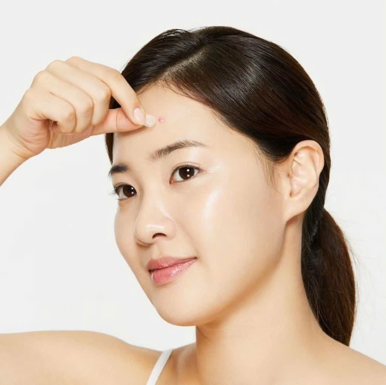 (Nếu dán miếng trị mụn lên da trước khi thực hiện quy trình dưỡng da thì miếng dán sẽ dính chặt vào da hơn.)