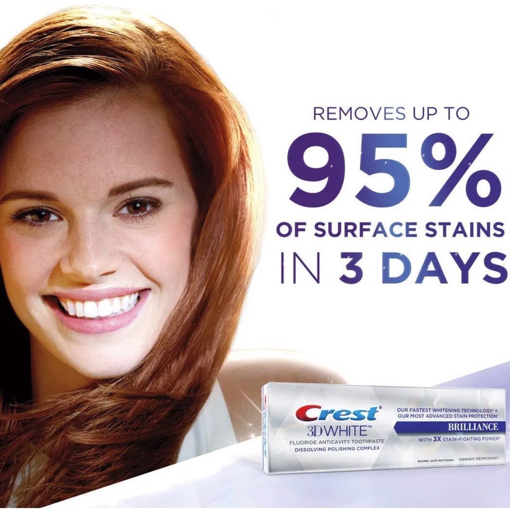 Kem đánh răng tiết kiệm và tiện dụng cho cả gia đình bạn cùng nhau chăm sóc răng miệng thơm sạch. Dùng thường xuyên kem đánh trắng sáng răng Crest 3D White Brilliance răng bạn sẽ trở nên sáng bóng, men răng và hàm răng luôn giữ vẻ tươi mới nhất.