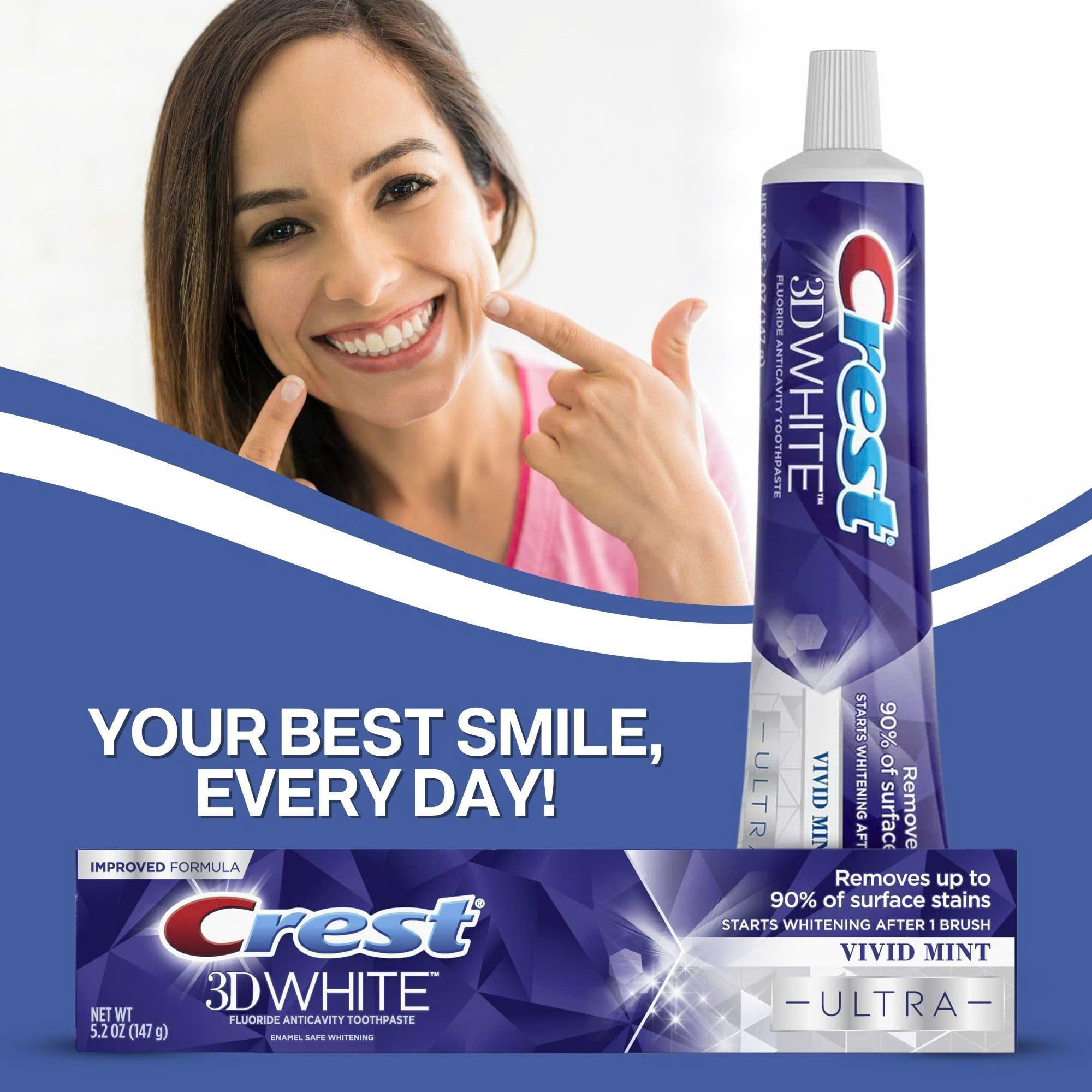 Crest 3D White là sản phẩm kem đánh răng được cấp bằng sáng chế về bảo vệ men răng giúp nhẹ nhàng làm sạch răng, tẩy bỏ các vết ố và mảng bám.