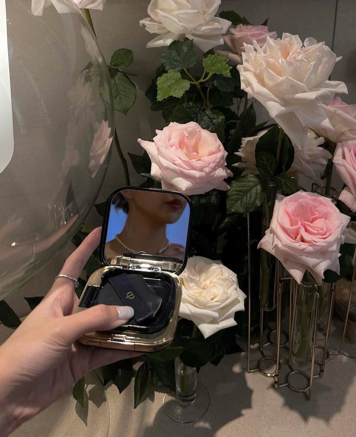 Radiant Cushion Foundation Dewy với phức hợp dưỡng ẩm hoa hồng Bulgari giúp cho làn da căng mịn như sương sớm cả ngày