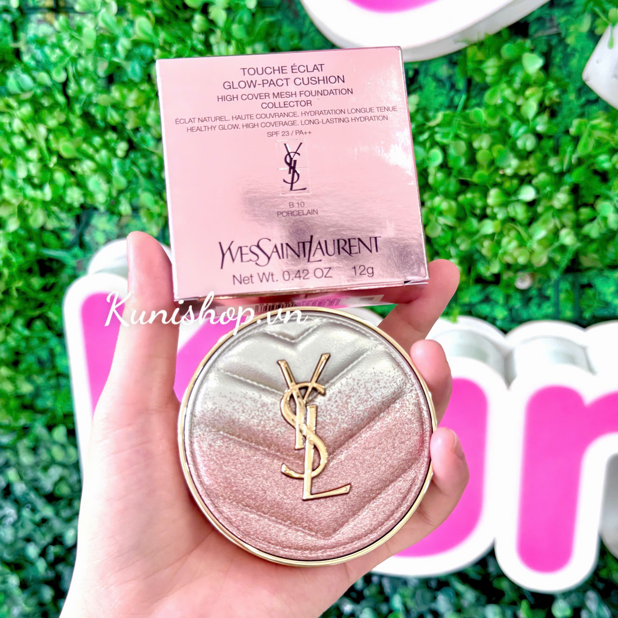 Cushion YSL Glow Pact High Cover Mesh Foundation Collector 2026 là một phiên bản giới hạn của phấn nước YSL Touche Éclat Glow-Pact Cushion với thiết kế vỏ "Collector" sang trọng, thường có họa tiết vân đá hoặc màu sắc đặc biệt (như vỏ hồng), tập trung vào độ che phủ cao, hiệu ứng glow khỏe khoắn, dưỡng ẩm sâu nhờ Hyaluronic Acid & Vitamin E, sử dụng công nghệ lưới (Mesh) để lấy kem đều và mỏng mịn, mang lại lớp nền tự nhiên, sáng rạng ngời cho da, phù hợp với da châu Á, có SPF cao để chống nắng.