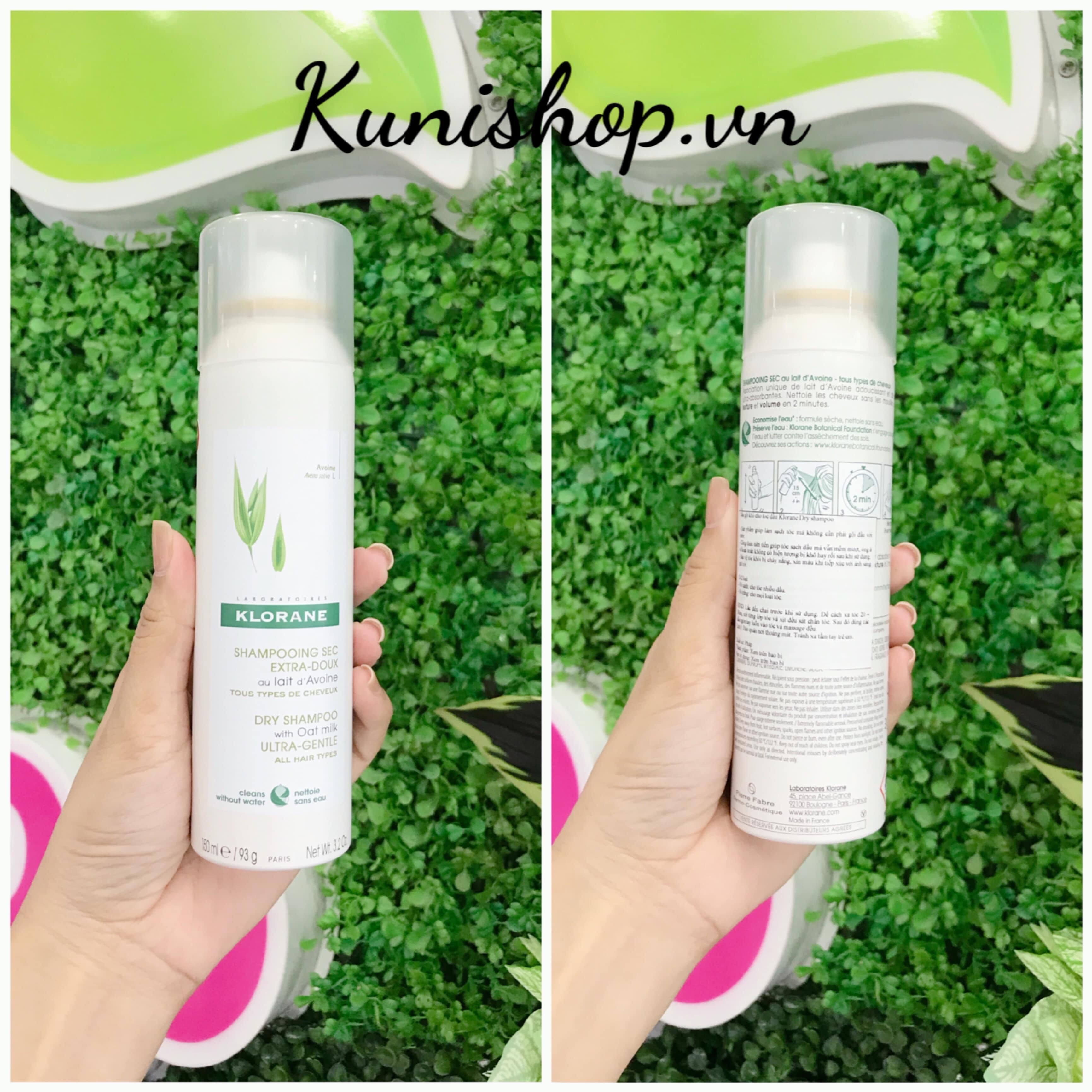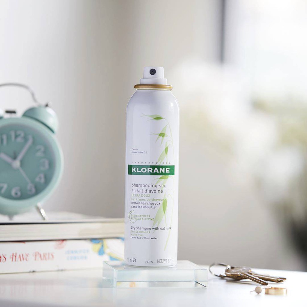 Dầu gội khô Klorane dành cho mọi loại tóc (nắp trắng): với chiết xuất bột yến mạch giúp làm mềm và bột Micronized với khả năng thấm hút rất cao và đặc biệt là thành phần Laboratories có chứa các sắc tố khoáng tạo màu nâu be tự nhiên, pha trộn vào tóc rất tự nhiên.
