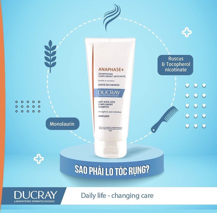 Dầu gội ngăn rụng tóc Ducray Anaphase+ là dầu gội dành cho tóc mỏng, yếu, giúp giảm rụng tóc, giúp tăng cường sức bền cho tóc và hỗ trợ trong các liệu pháp điều trị, ngăn ngừa rụng tóc.
