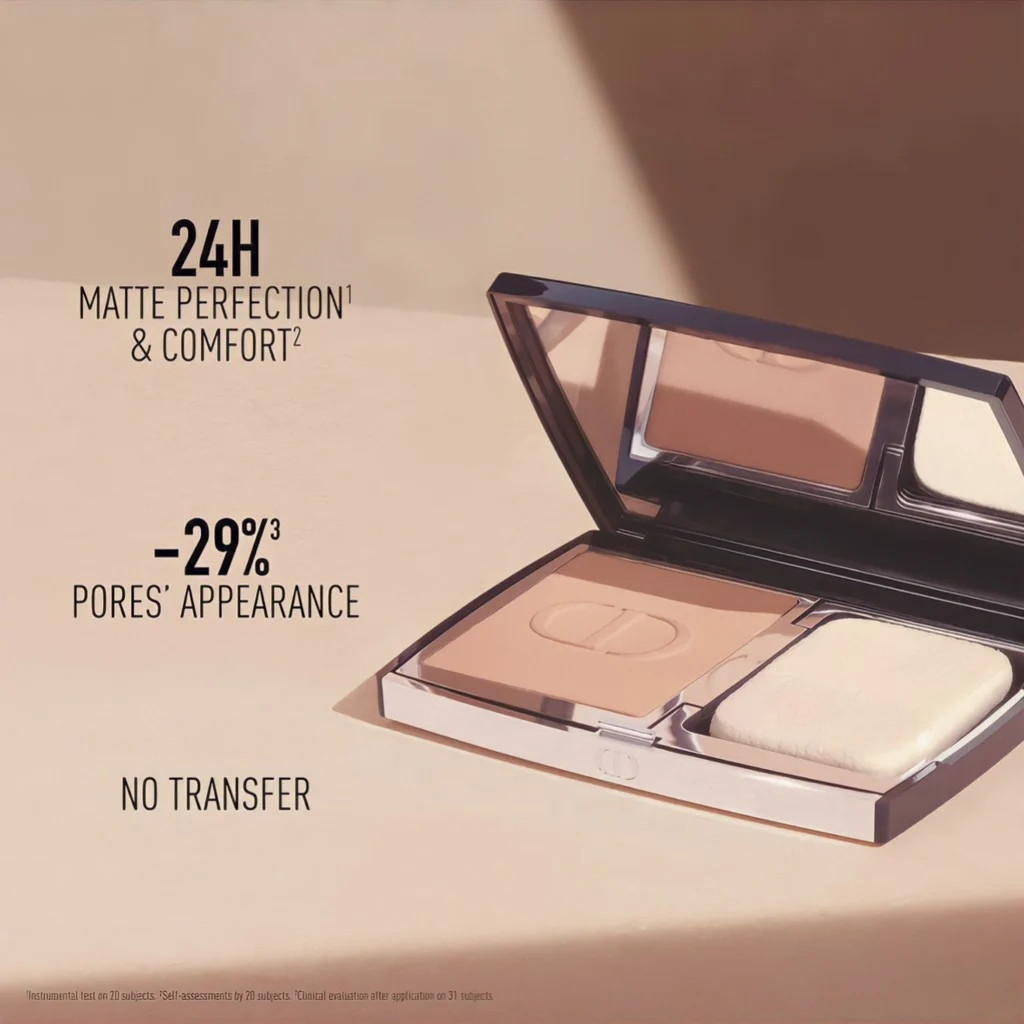 - Phấn phủ dạng nén không thấm nước đầu tiên của 𝐃𝐈𝐎𝐑 với thời gian “wear” trên da trong 24h, được tạo ra với 90% thành phần có nguồn gốc tự nhiên.