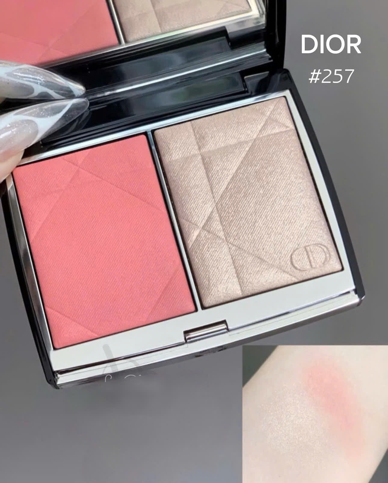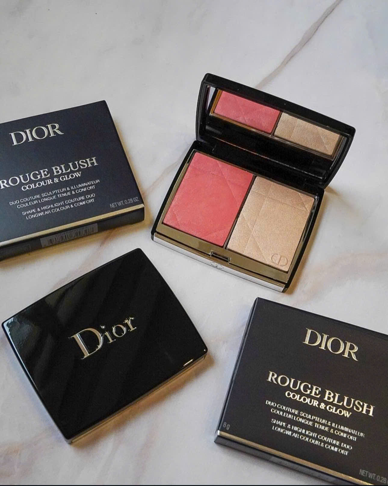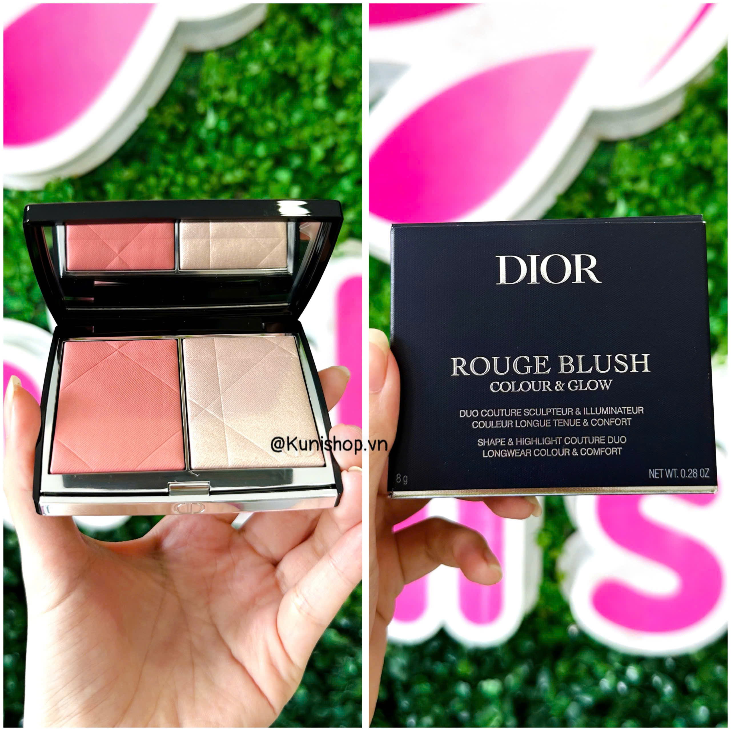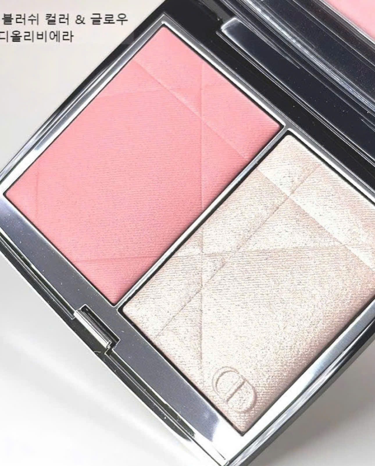 Phấn Bắt Sáng Và Tạo Khối Dior Rouge Blush Colour & Glow kết hợp hai sắc thái: Một màu lì với cường độ có thể điều chỉnh để thêm màu sắc và cấu trúc, và một màu highlighter được pha với các sắc tố ngọc trai đa chiều để tắm khuôn mặt trong ánh sáng thu hút.