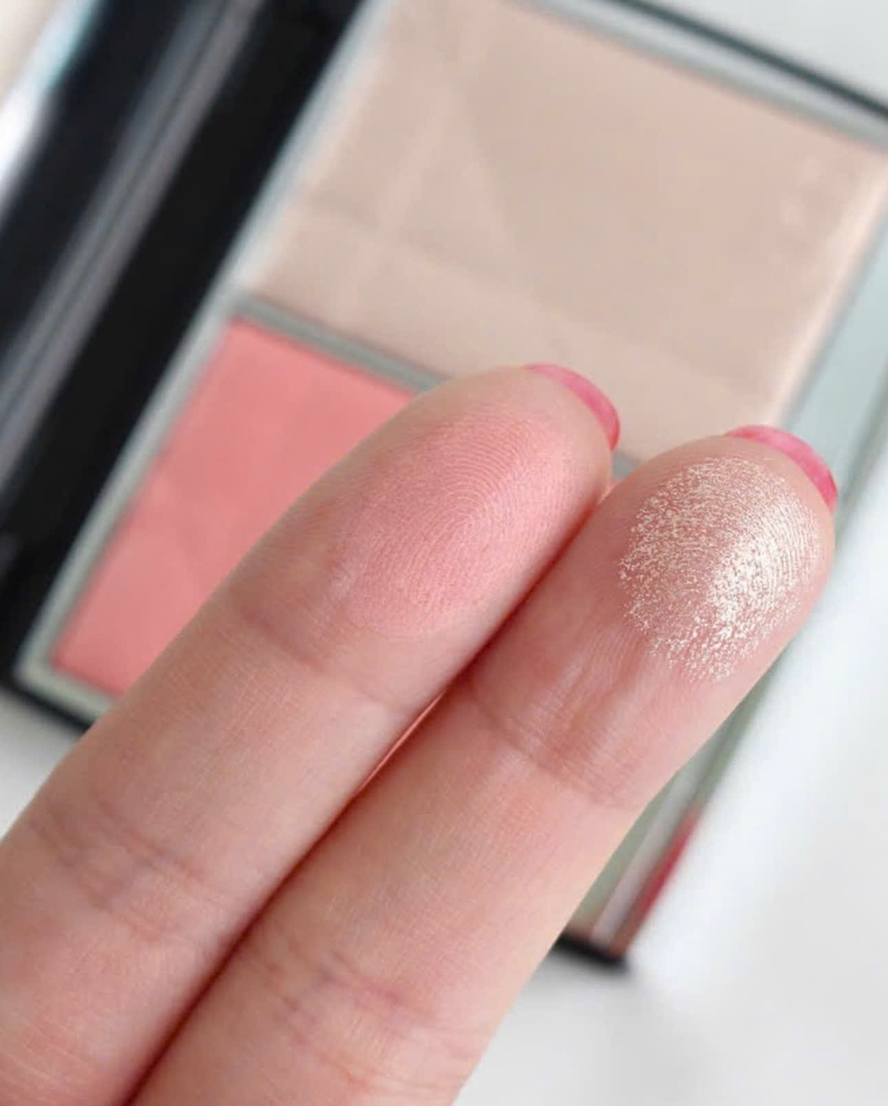 Phấn highlight: Chất phấn mịn, chứa các hạt nhũ ngọc trai đa chiều, tạo hiệu ứng bắt sáng tự nhiên và rạng rỡ, không gây cảm giác bột hay lộ vân phấn.