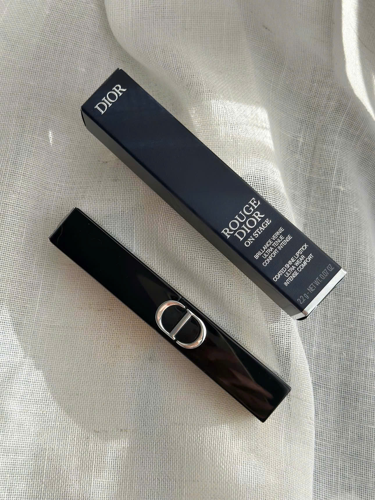 Son Dior Rouge Dior On Stage sở hữu thiết kế thanh mảnh, sang trọng với vỏ màu đen bóng bẩy, toát lên vẻ hiện đại và đẳng cấp. Điểm nhấn là logo "CD" màu bạc nổi bật ở giữa thân son, tạo dấu ấn thương hiệu tinh tế. Đặc biệt, đầu son được vát chéo độc đáo, mô phỏng sự kết hợp giữa chì kẻ môi và son thỏi, giúp người dùng dễ dàng tạo đường viền sắc nét và tô đầy môi một cách chính xác. Thiết kế này không chỉ đẹp mắt mà còn rất tiện lợi, mang lại trải nghiệm sử dụng cao cấp và chuyên nghiệp.