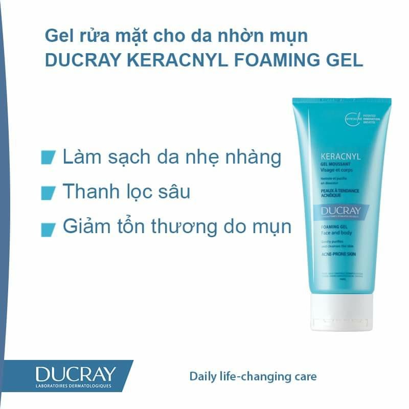 Chính vì vậy sữa rửa mặt dành cho da dầu Ducray Keracnyl Foaming Gel ra đời sau thời gian dài nghiên cứu của tập đoàn dược mỹ phẩm nổi tiếng của Pháp - Piere Fabre. Đây là sữa rửa mặt dịu nhẹ dạng gel trong suốt, giúp dễ dàng lấy đi bụi bẩn và loại bỏ bã nhờn trên da, lại không gây khô da và tránh được tổn thương cho da nhạy cảm như các loại sữa rửa mặt chứa hạt khác.