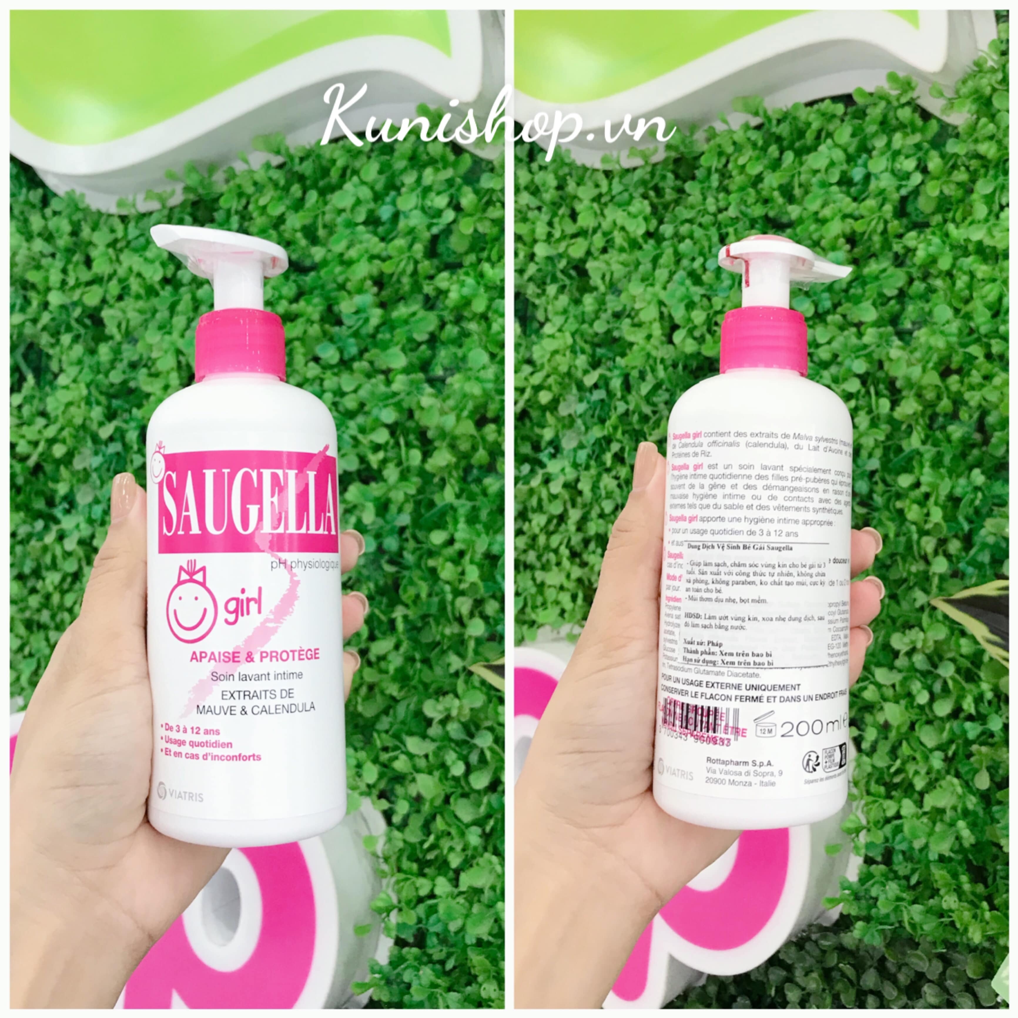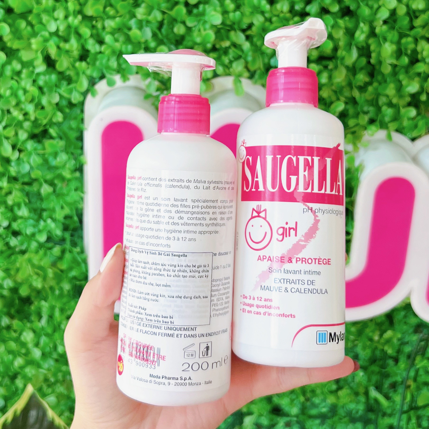 - Dung dịch vệ sinh cho bé gái Saugella chiết xuất hoàn toàn từ tự nhiên, không chứa xà phòng, không paraben, ko chất tạo mùi, cực kỳ lành tính cho bé