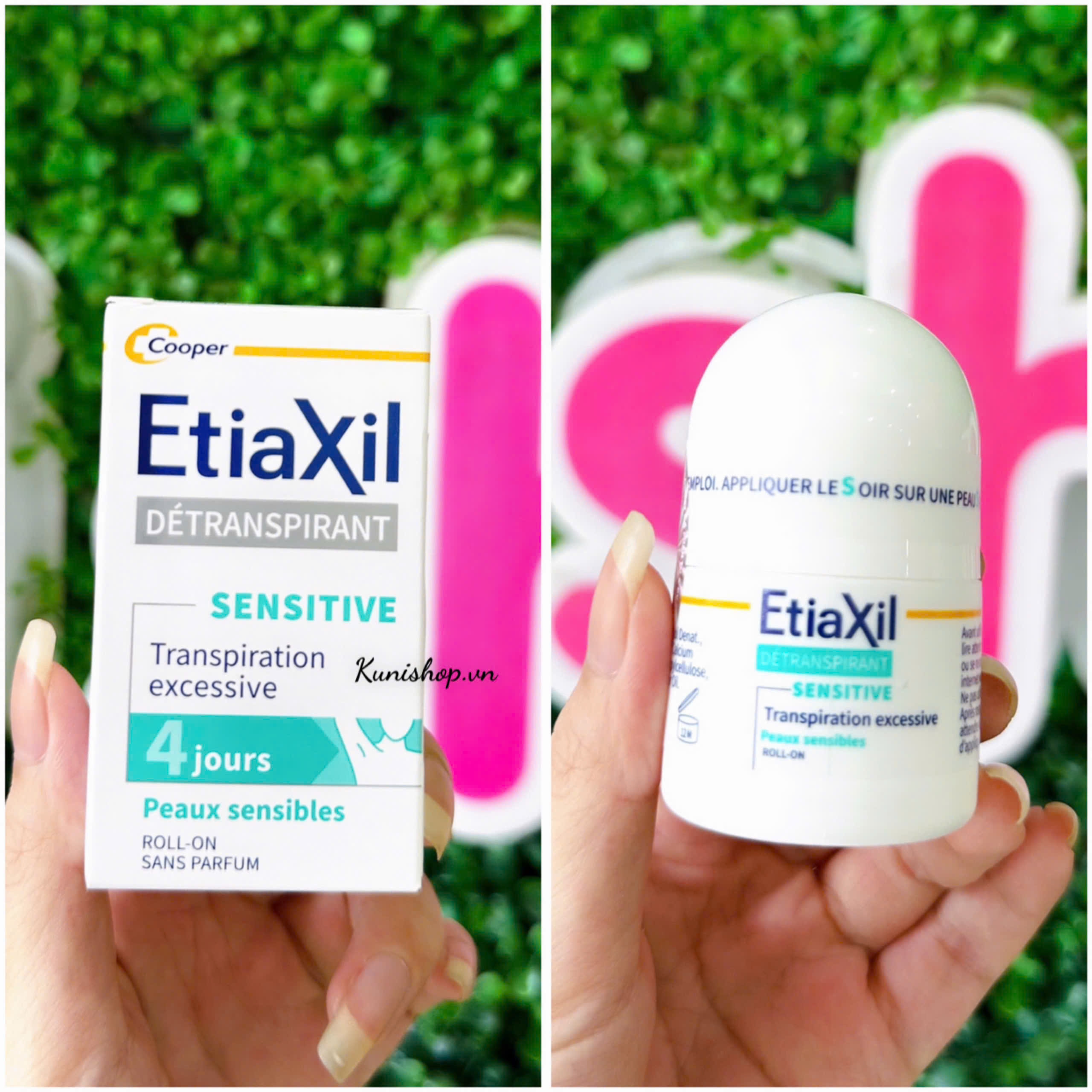 EtiaXil không có mùi cũng không gây vàng áo, và đặc biệt là sử dụng được cho cả những làn da nhạy cảm. Bạn có thể thấy được dòng chữ Peaux sensibles trên vỏ hộp.