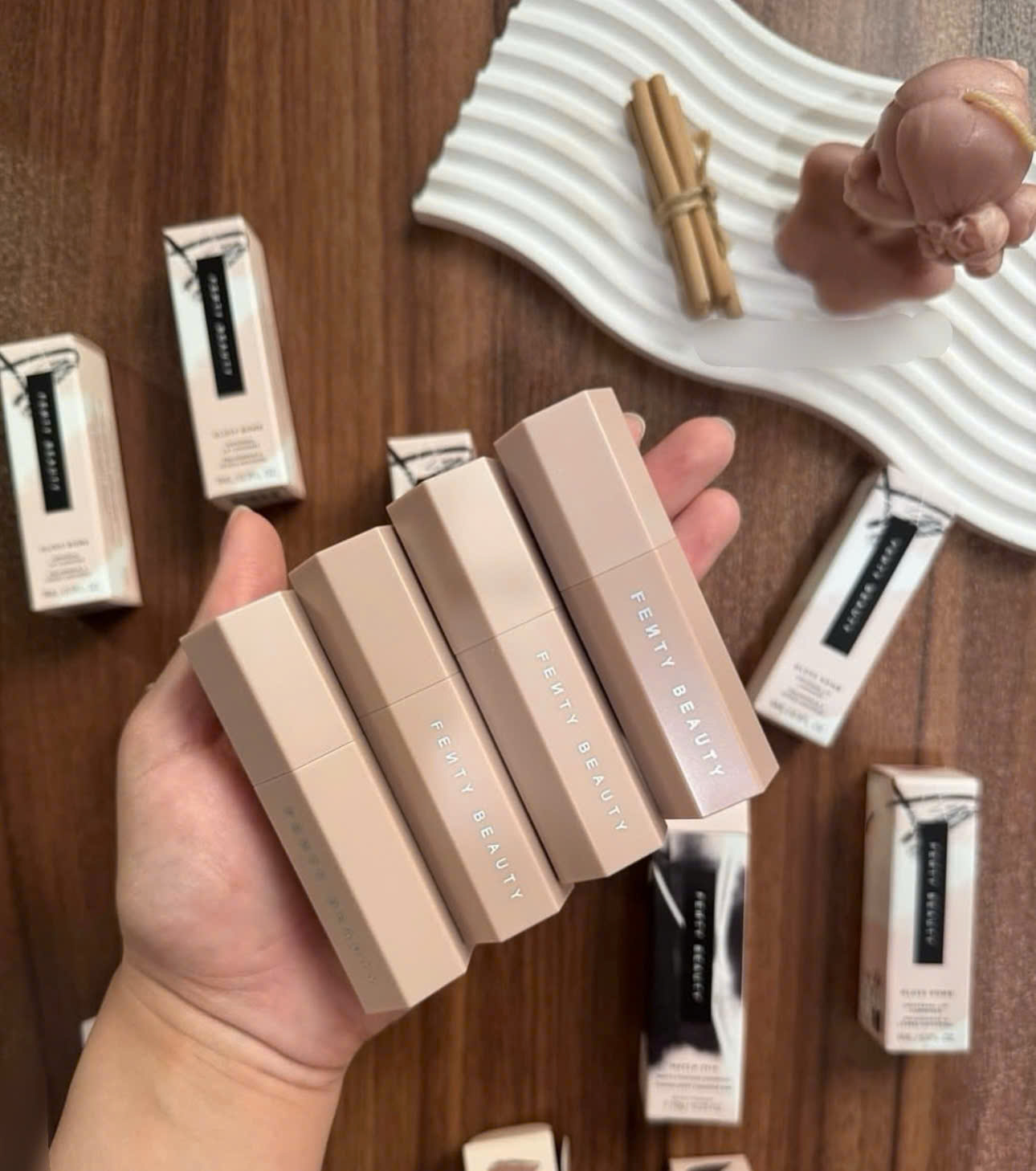 - Khắc phục khuôn mặt vuông: dùng Tạo khối Fenty Beauty thoa 2 bên góc má giúp tạo cảm giác khuôn mặt đỡ vuông và thanh thoát hơn.
