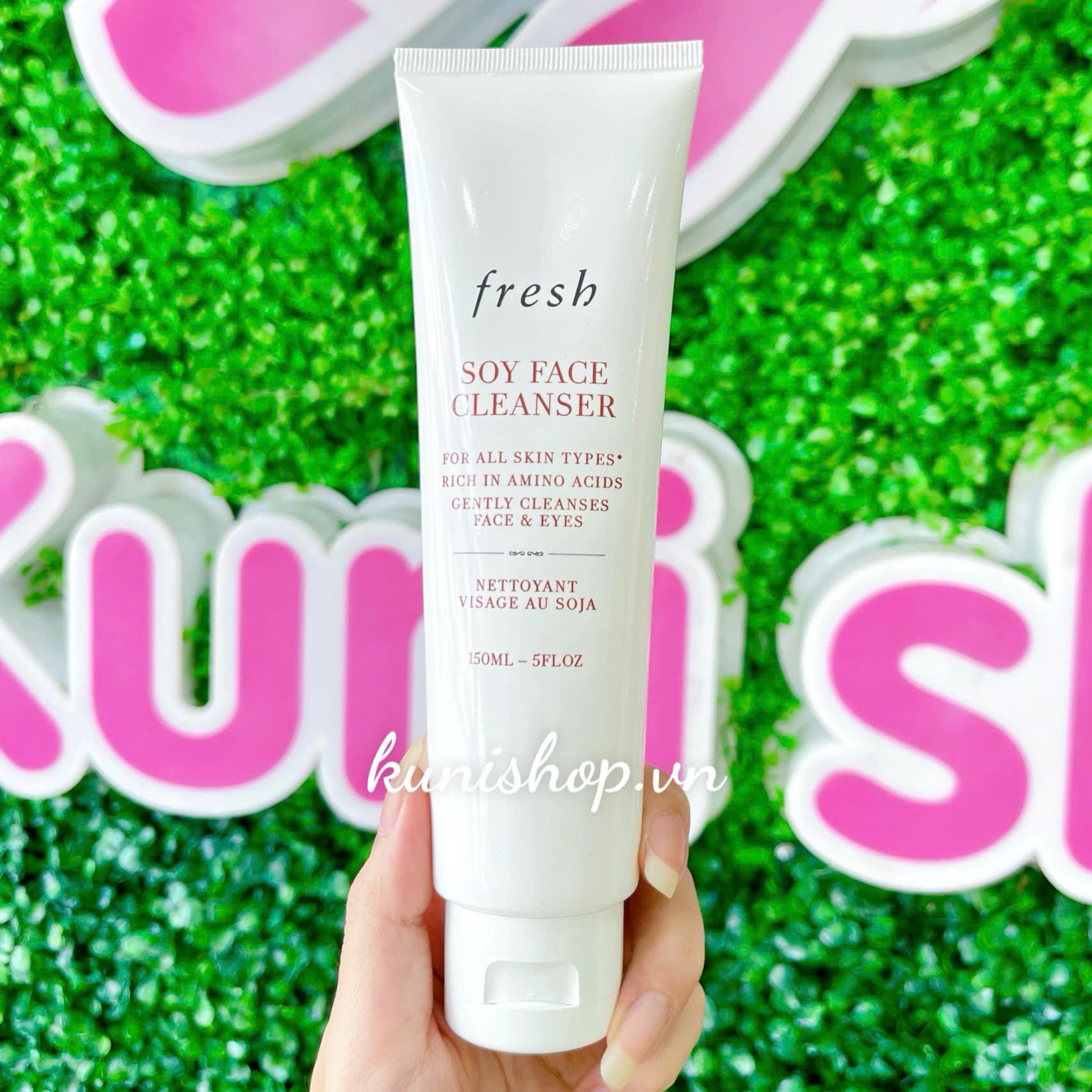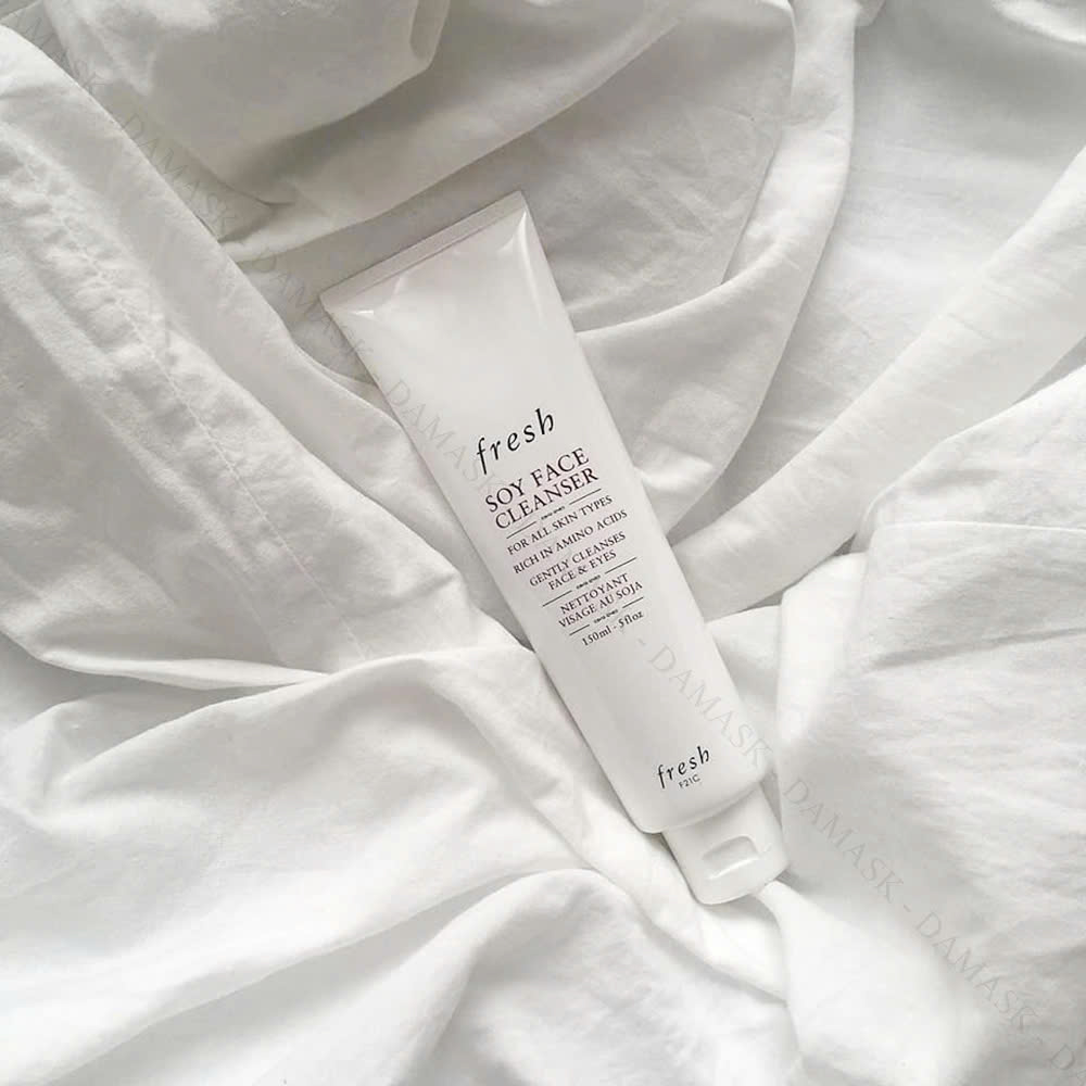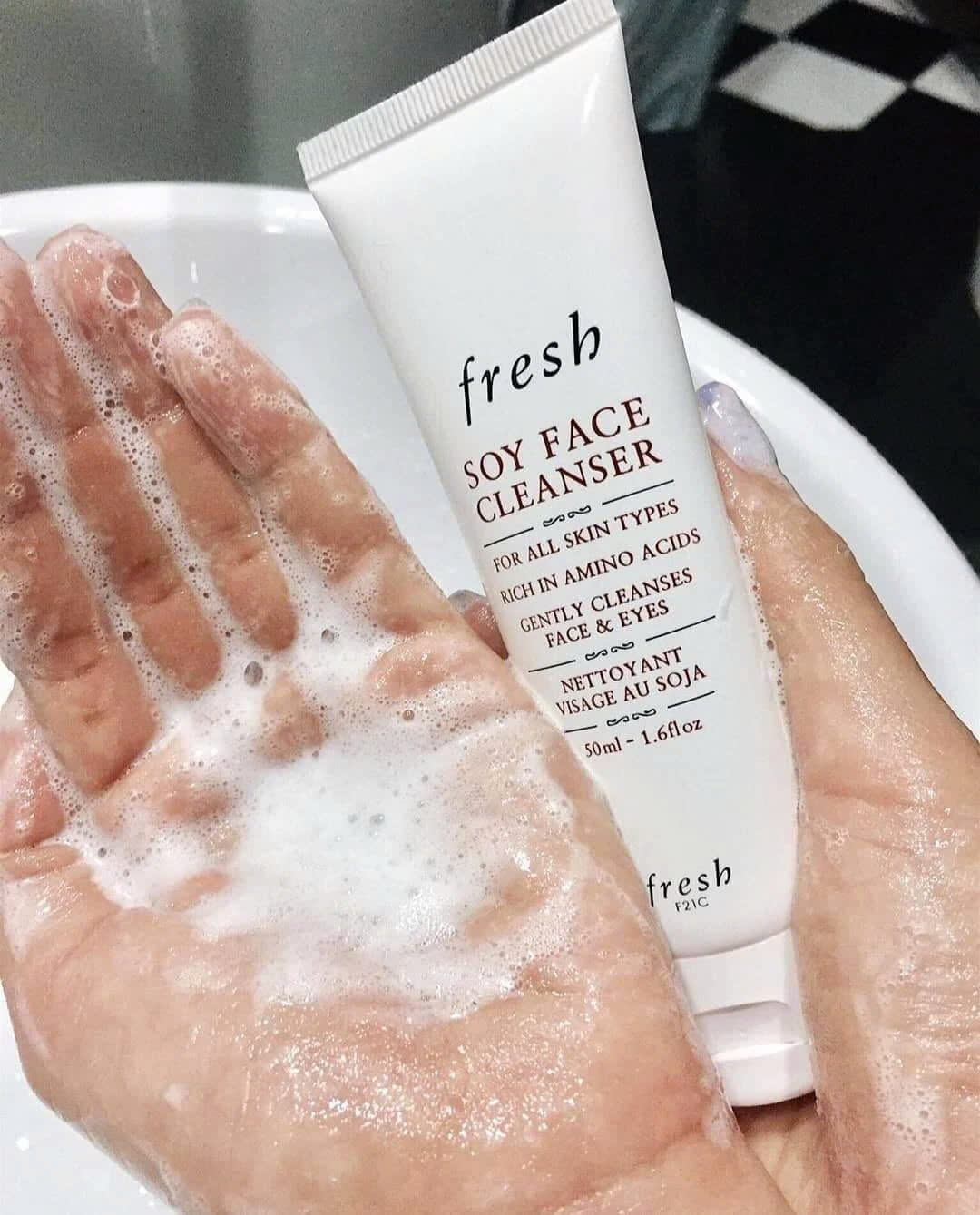 - Bơm một lượng Fresh Soy face cleanser ra lòng bàn tay, thêm một chút nước rồi đánh tạo bọt.