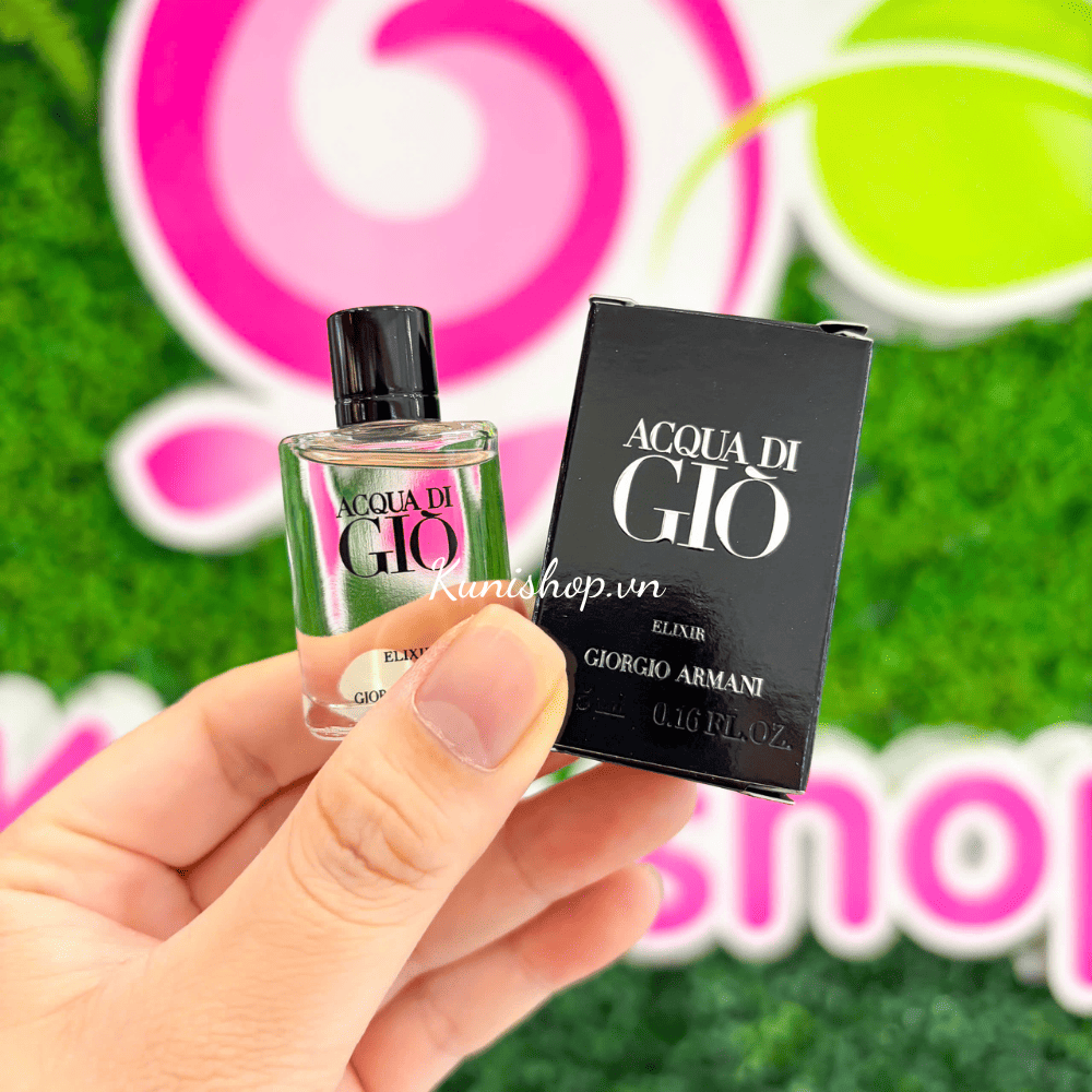 Giorgio Armani Acqua di Giò Elixir mở đầu với sự bùng nổ của cam bergamot, quýt xanh và nhục đậu khấu, mang đến cảm giác tươi mát, cay nồng đầy kích thích. Khi hương đầu lắng xuống, lá hoa violet và hương nước tạo nên sự thanh thoát, tao nhã, gợi lên hình ảnh biển khơi trong lành và đầy sức sống. Cuối cùng, lớp hương nền ấm áp và nam tính với da thuộc, hoắc hương, cỏ hương bài và labdanum, tạo nên dấu ấn mạnh mẽ, quyến rũ và đầy cuốn hút.