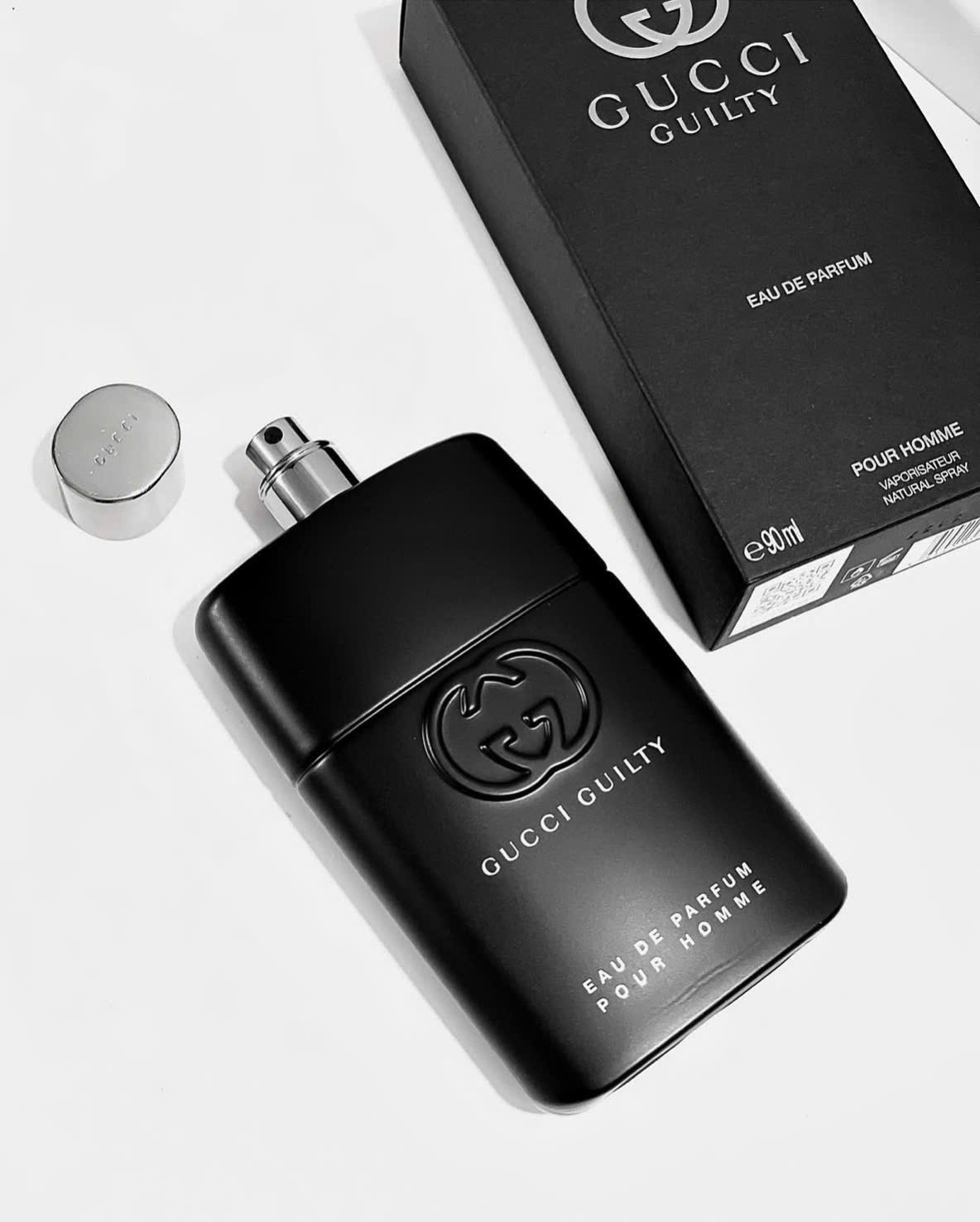 Hồng và Gia vị nhảy múa khá lâu trong khứu giác của chúng ta, quyến luyến và day dứt, để rồi được làm dịu dàng và trầm lắng trở lại bằng những mùi hương quen thuộc trong mỗi chai nước hoa nam, những Hoa cam, hay Oải hương. DNA của Gucci Guilty dần dần hiện trở lại rõ ràng, bằng hương Gỗ tuyết tùng, tạo nên một tấm nền vững chắc, mạnh mẽ và đầy lôi cuốn cho Gucci Guilty Pour Homme Eau de Parfum.