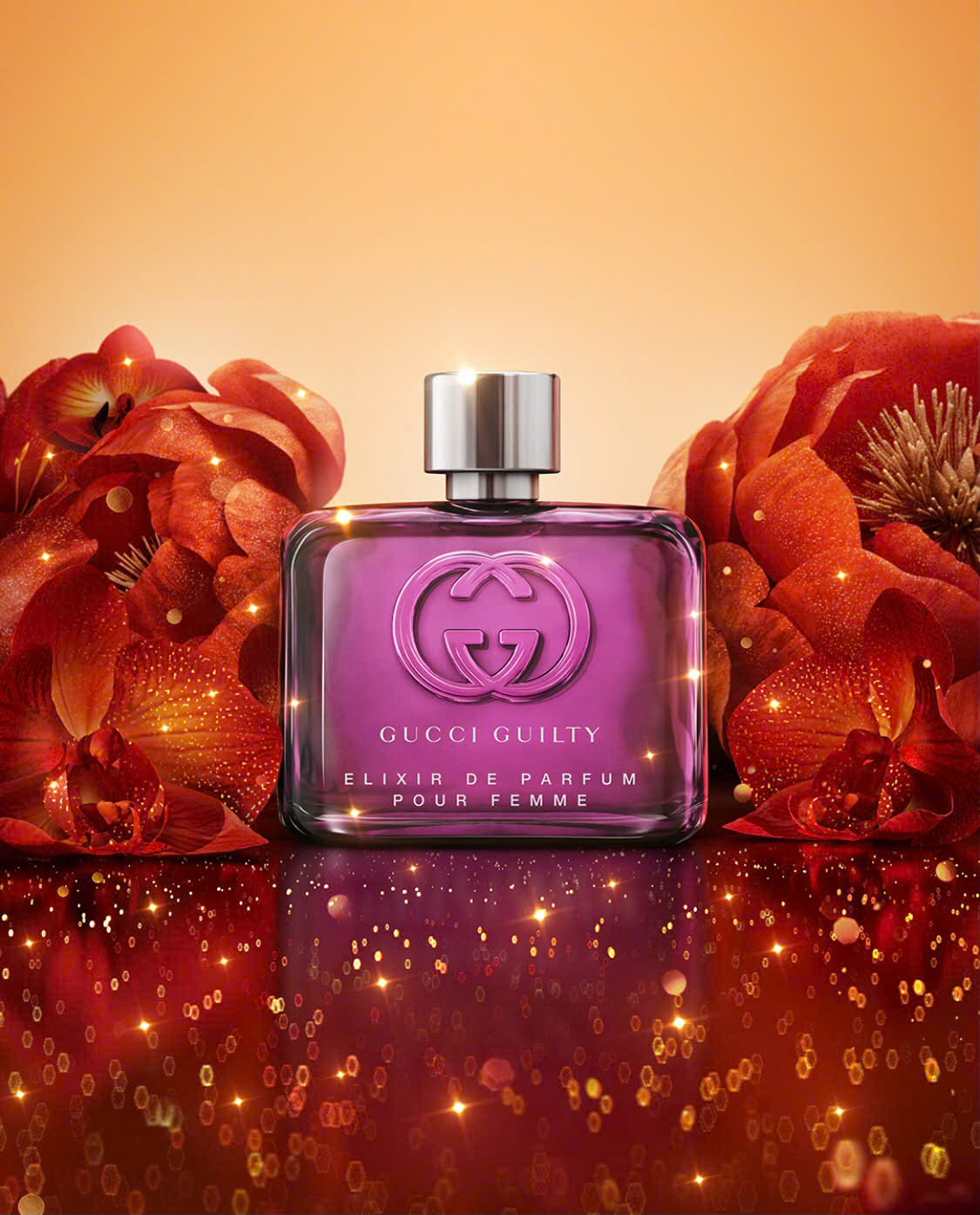 Mở đầu, chai nước hoa mang đến sự tươi mát của cam Bergamot và sự quyến rũ độc đáo của quả Mandora. Những nốt hương này tạo nên một mở đầu tươi sáng và đầy sức sống, làm dậy thức giác và tạo nên cảm giác sảng khoái. Tầng hương giữa đem đến sự quyến rũ và nữ tính. Hương hoa tử đằng nồng nàn và tinh tế cùng với sự kiêu sa của hoa hồng, tạo nên một tầng hương trung tâm đầy lôi cuốn. Hoa mộc hương thêm sự ấm áp và mềm mại, tạo nên một tinh thần thật sự gợi cảm. Và đến cuối cùng, ở tầng hương cuối, Gucci Guilty Elixir De Parfum Pour Femme đem đến sự ấm áp và độc đáo. Hương Vani kết hợp cùng đậu Tonka ngọt ngào và cây hoắc hương bí ẩn, tạo nên một kết thúc đầy sâu lắng và quyến rũ cho mùi hương.