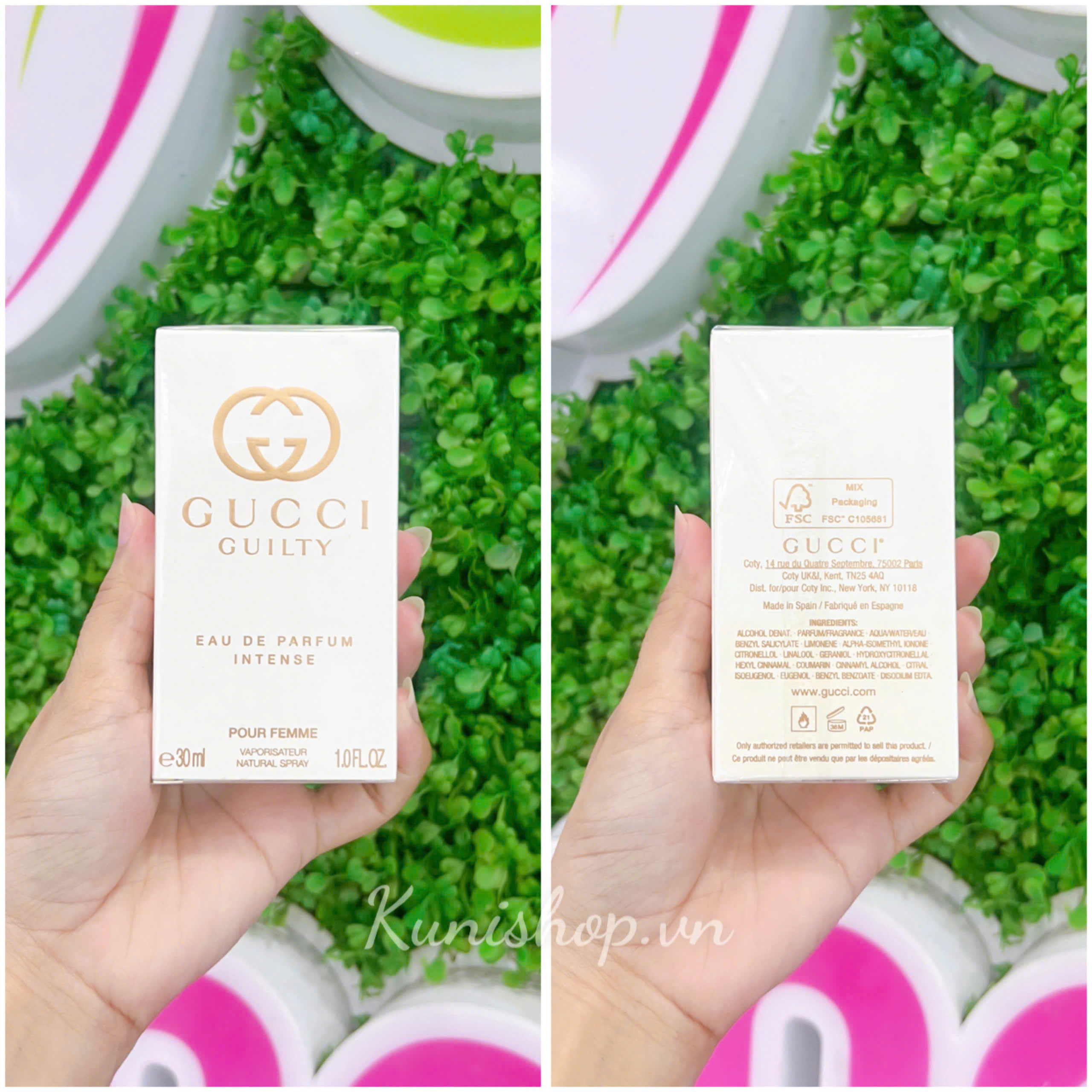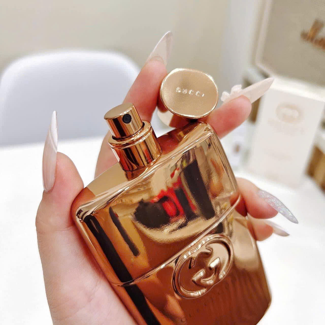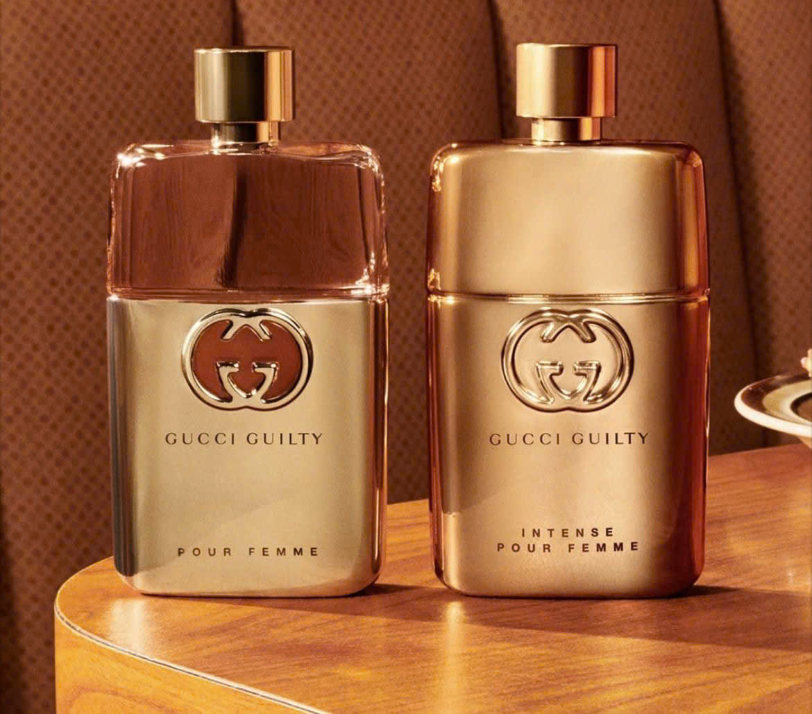 Đầu năm 2022, Gucci tung ra thị trường hai sản phẩm nước hoa dành cho nam và nữ của dòng Gucci Guilty là Gucci Guilty Pour Femme EDP Intense và Gucci Guilty Pour Homme EDP. Phiên bản nữ Gucci Guilty Pour Femme EDP Intense được cải tiến hơn so với “người tiền nhiệm” với phong cách lãng mạn, bí ẩn và độ sexy được nâng lên rõ nét. Thiết kế cách điệu mang hơi thở đương đại, được bao bọc hoàn toàn bởi lớp kim loại, trang trí nguyên khối bằng đồng. Các góc được tinh tế bo góc tròn trịa, chữ G được lồng vào nhau mang biểu tượng của ngôi nhà. Cả thảy đem đến trải nghiệm khá độc đáo bằng nhãn quan cho người hâm mộ.