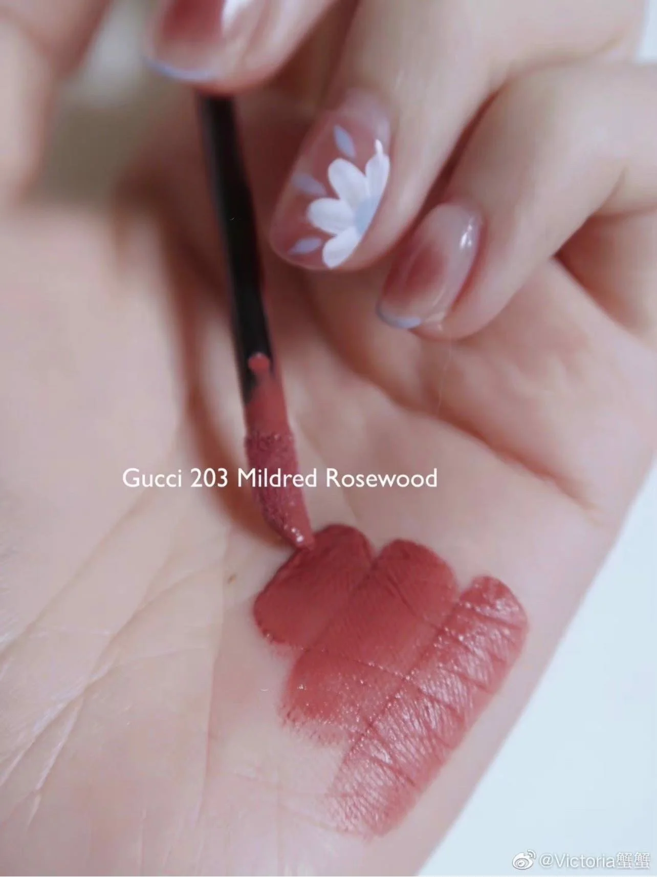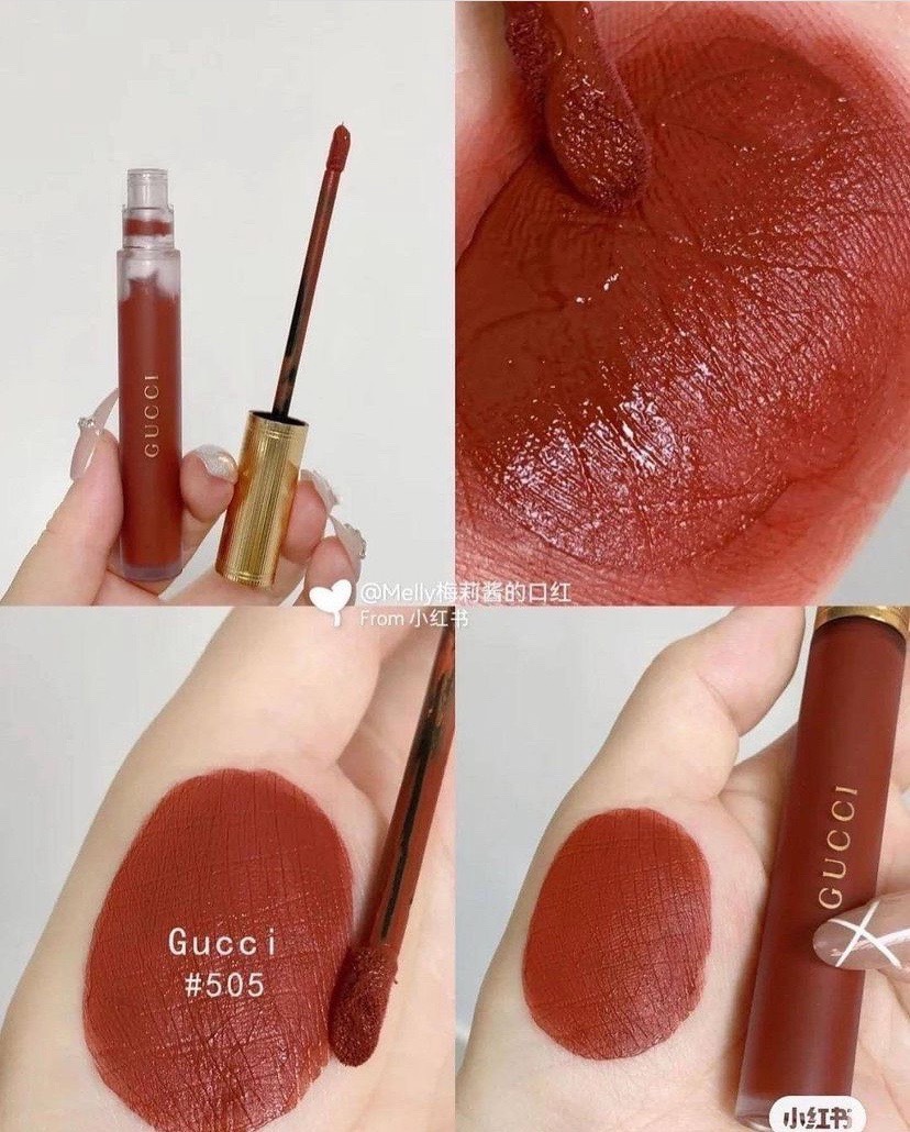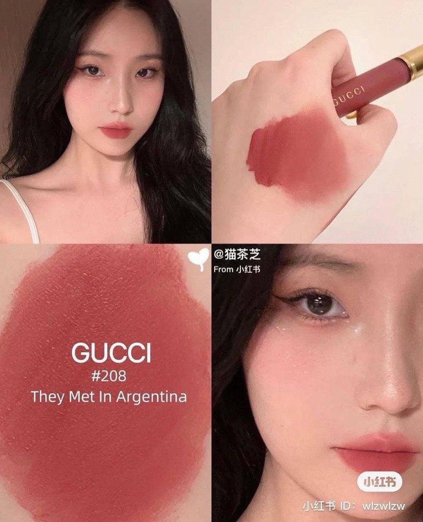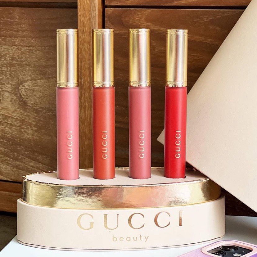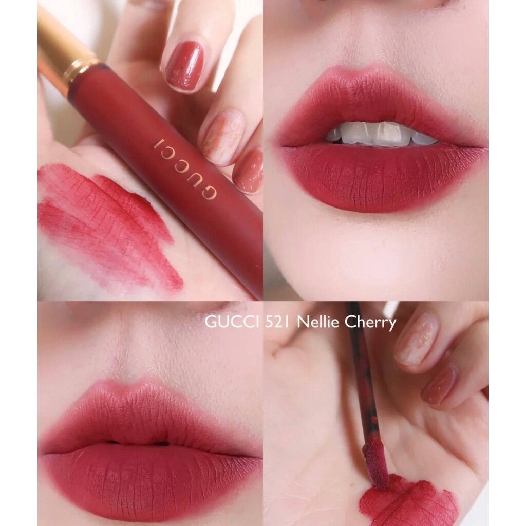 Chất son Gucci kết cấu dạng kem mềm mịn như bột thoa lên môi chuyển hoá thành lớp finish mờ lì, xốp mềm, siêu nhẹ tênh đã thế còn cực kì mềm môi, lên chuẩn màu. Độ bên đỉnh cao, dễ tán không sợ bị lộ vân môi.