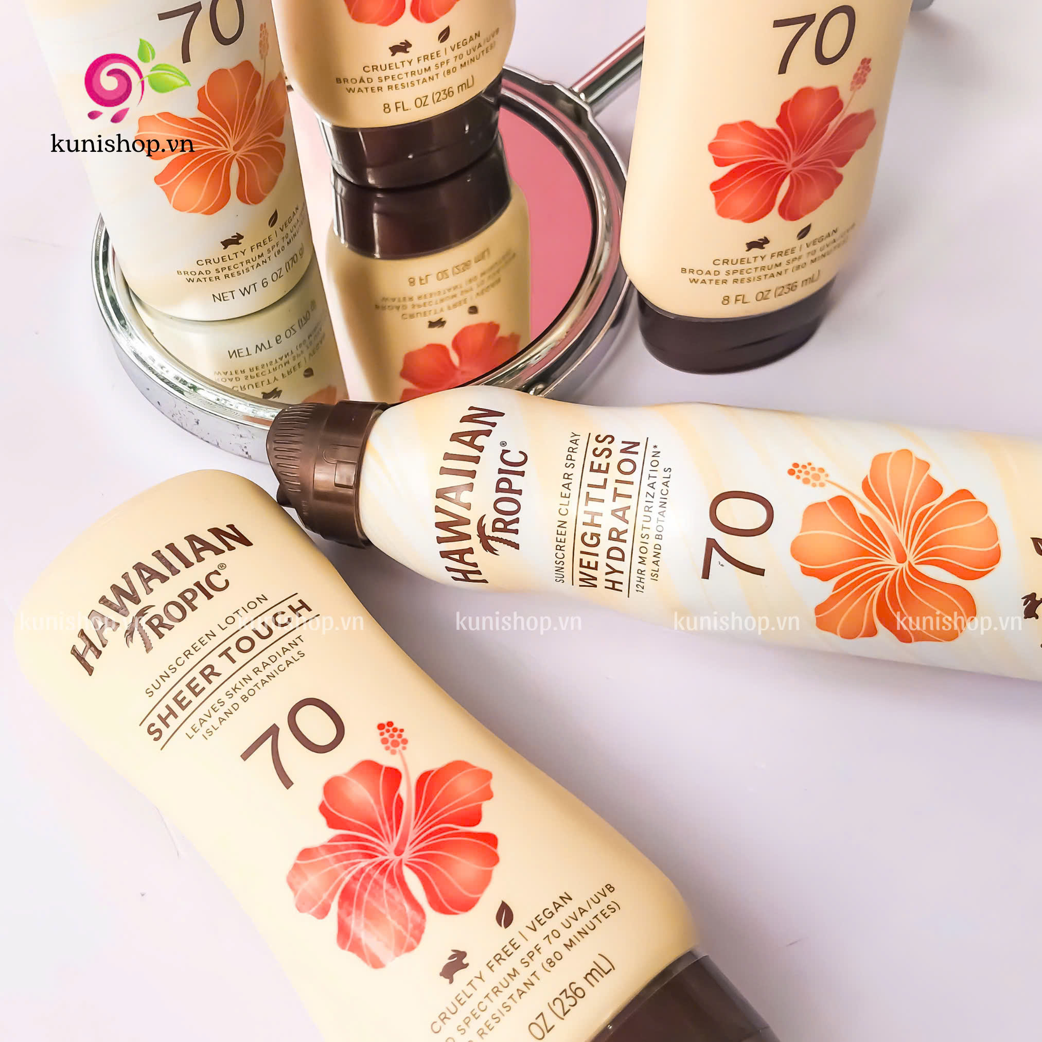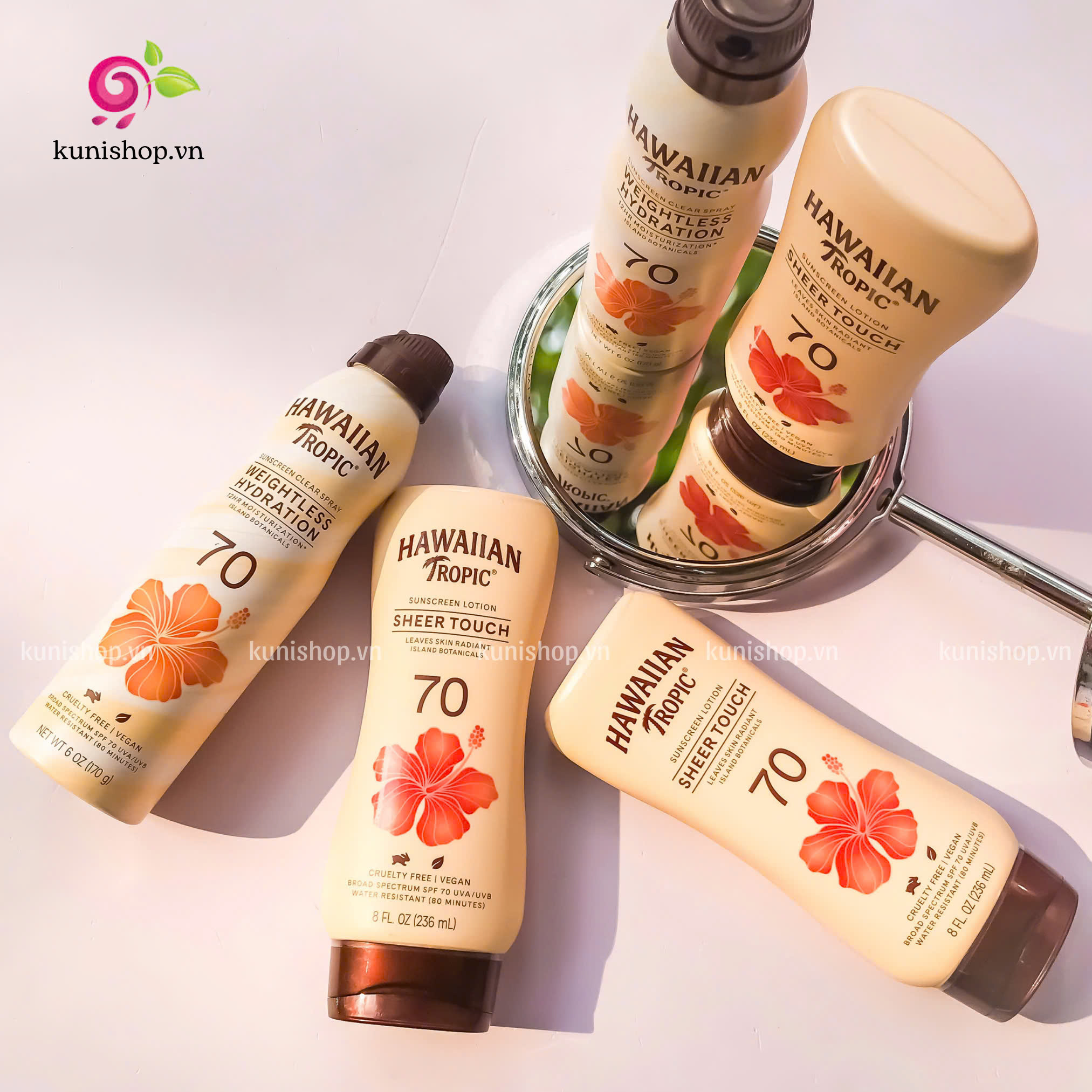 Hawaiian Tropic Sheer Touch Ultra Radiance Lotion Sunscreen SPF 70 giàu vitamin C + E và bơ hạt mỡ, kem chống nắng nuôi dưỡng da này bảo vệ và làm mềm làn da của bạn. Với một chút ánh sáng tinh tế, bạn sẽ cảm thấy rạng rỡ + trông rạng rỡ cả ngày, bất kỳ ngày nào.