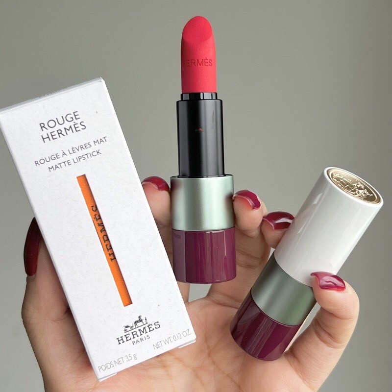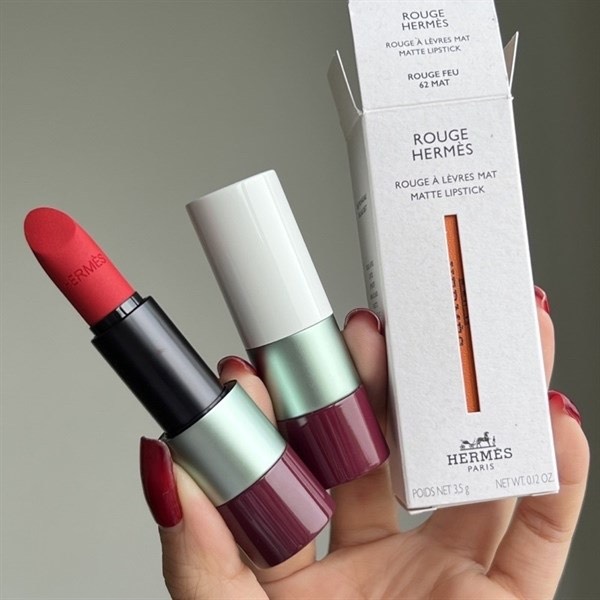 Muốn tìm thỏi son màu đỏ cam sang – xịn – mịn thì đừng bỏ lỡ cây Hermes Rouge Hermes Matte lipstick. Đây là một trong những bộ sưu tập cây son hàng hiệu xứng tầm, dù nhìn trên ảnh hay cầm trên tay đều thấy trơn mềm, chắc mịn. Nói son Hermes là niềm mơ ước của phái đẹp cũng chẳng ngoa, bởi không phải ai cũng có thể “rinh” cả bộ sưu tập để thỏa mãn đam mê makeup.