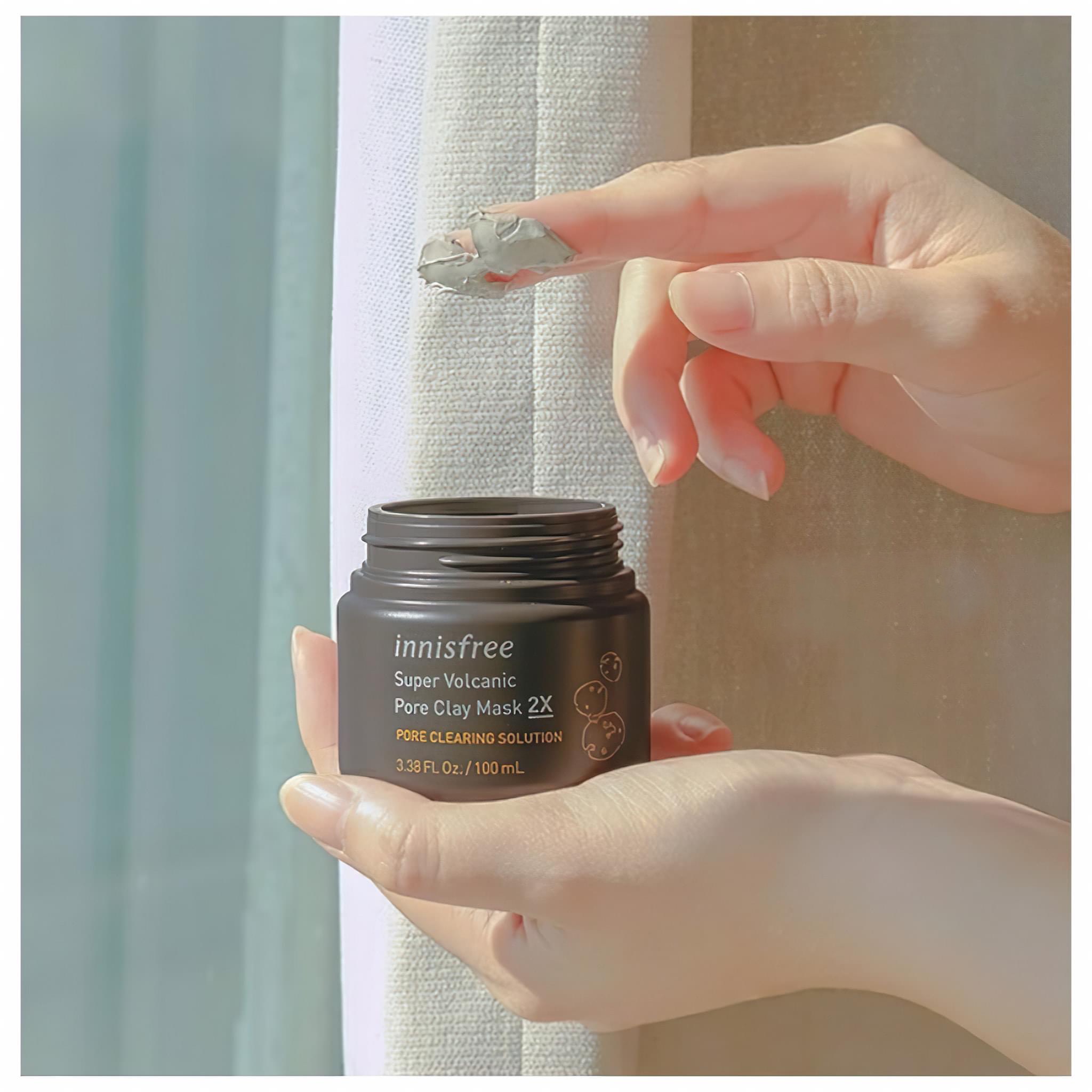 Innisfree Super Volcanic Pore Clay Mask có tinh chất chiết xuất từ các hạt tro núi lửa, với 6,020mg đất sét từ dung nham phun trào của núi lửa đảo Jeju, đem lại hiệu quả rất lớn trong loại bỏ bã nhờn và các tạp chất khác. Đồng thời chứa chiết xuất từ của trà xanh, quýt, quả thanh yên, và cây xương rồng được trồng trên đảo Jeju giúp cung cấp sức sống cho làn da tối ưu nhất.