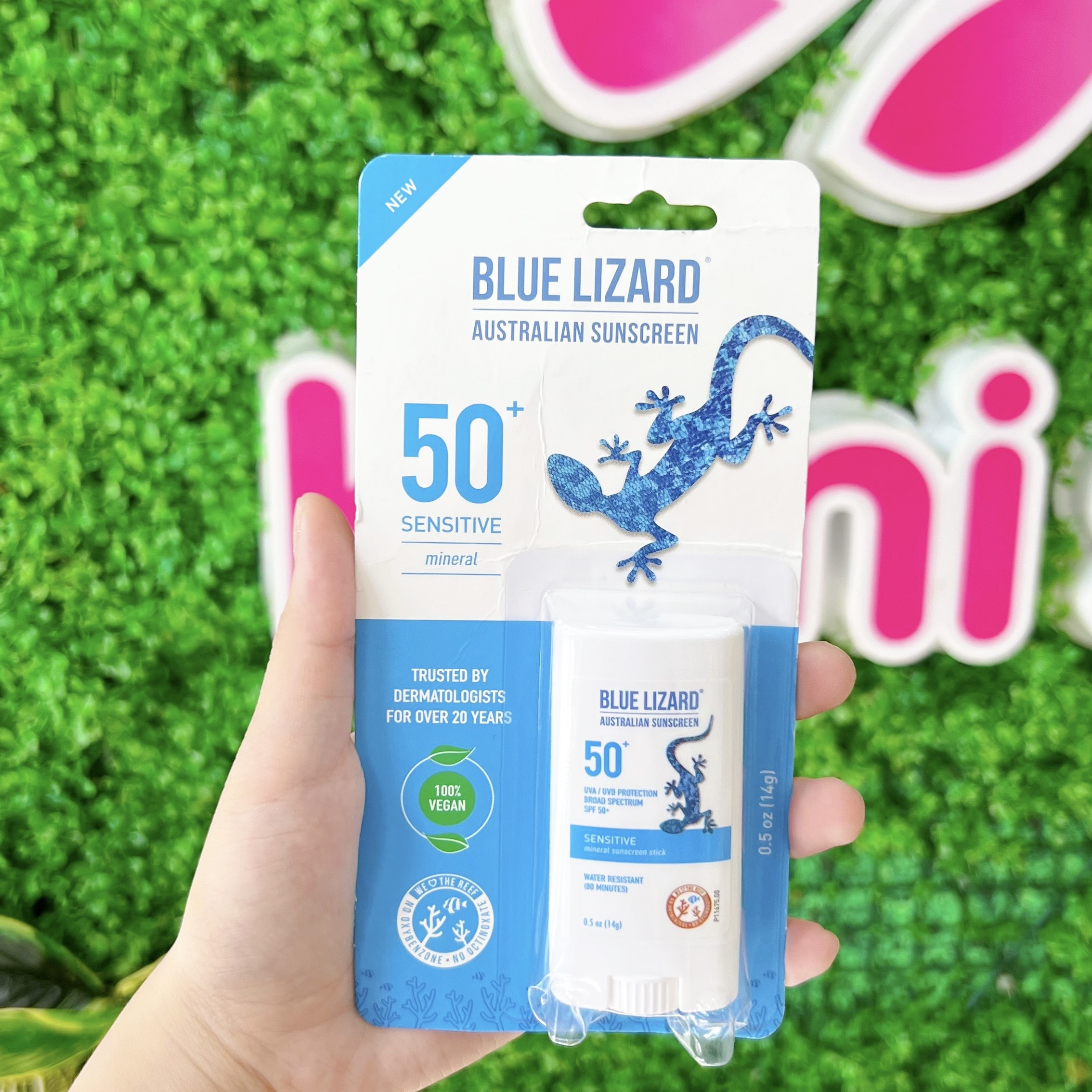 Blue lizard Sensitive Mineral Sunscreen Stick SPF 50+ - kem chống nắng dạng thỏi giúp bảo vệ những vùng da cực kì nhạy cảm như mũi, tai, những vùng da bị sẹo và đốm nâu khỏi ảnh hưởng của tia UV, bảo vệ những vùng da nhạy cảm trên gương mặt, như vùng tai, mũi, vùng da bị sạm và đốm nâu khỏi sự ảnh hưởng của tia UVA - UVB, đồng thời dưỡng ẩm và bảo vệ cho da tại mỗi thời điểm khí hậu trong năm. Một điểm đặc biệt của sản phẩm này là chống nước, chống ma sát, chống trôi, đồng thời cực kì nhẹ dịu và không làm cay mắt.
