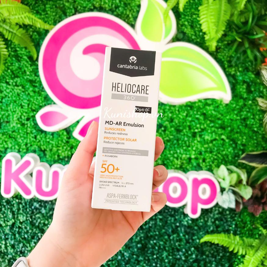 Kem chống nắng Heliocare 360 MD A-R Emulsion SPF50+ 50ml được thiết kế dành cho làn da dễ bị mẩn đỏ, công thức độc đáo này sử dụng hệ thống chống mẩn đỏ (Physavie, Rosabora và Glutathione) kết hợp cùng với bộ lọc chống nắng thông minh đảm bảo khả năng bảo vệ da tối ưu.