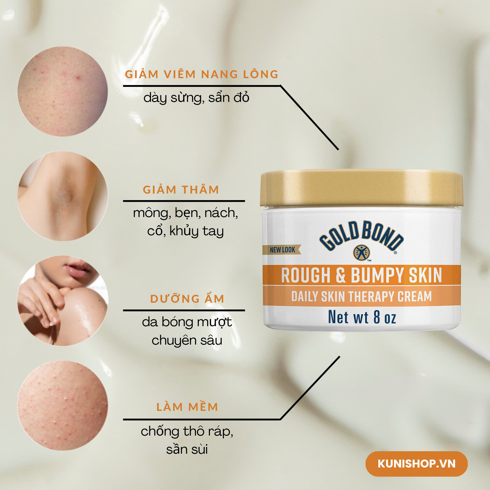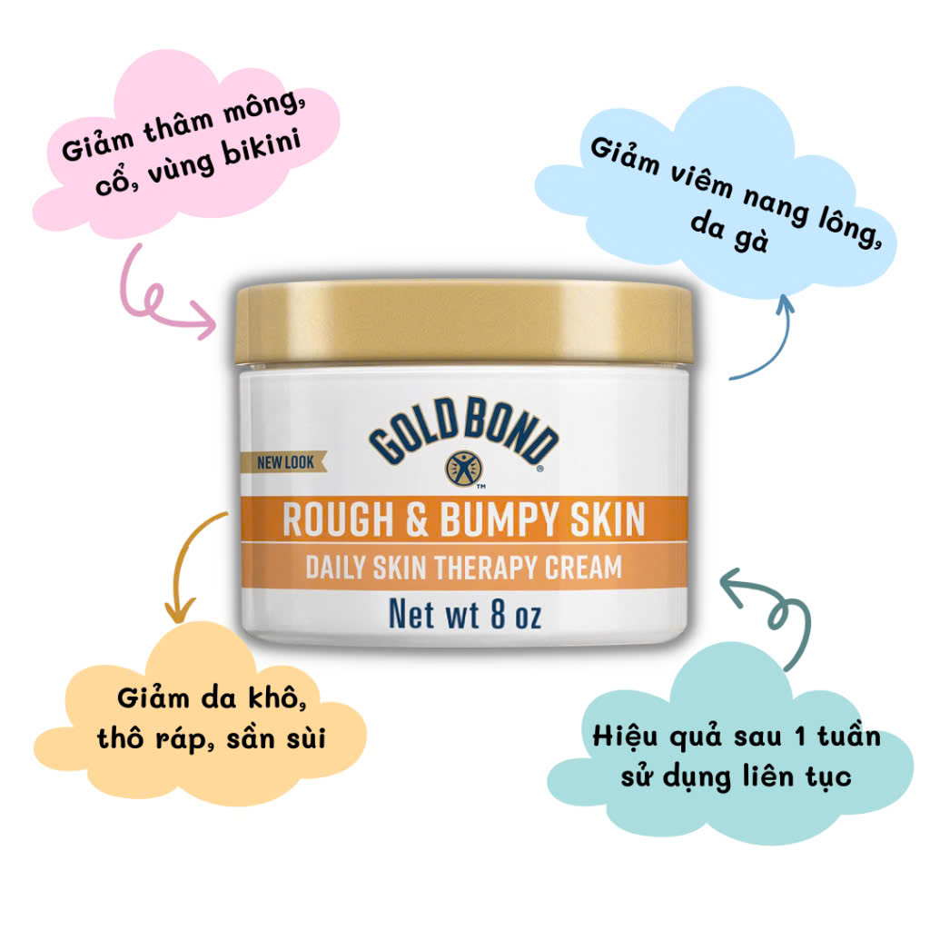 Vượt qua làn da thô ráp - Kem dưỡng thể Gold Bond Rough & Bumpy làm mềm và mịn da để giảm sự xuất hiện của các vết sưng tấy.